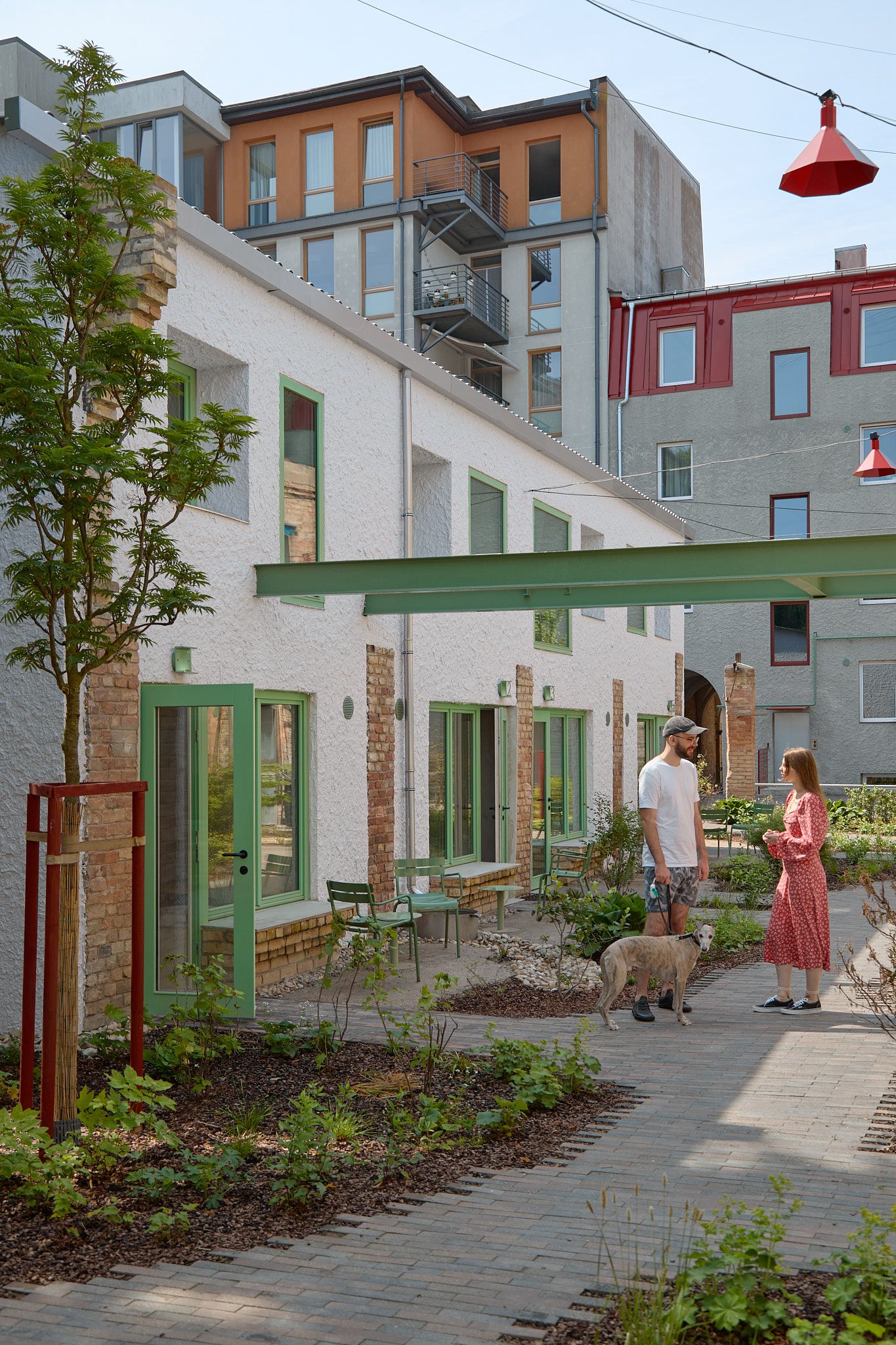 Projektā pieejami dzīvokļi gan elegantajā fasādes ēkā, gan klusajās iekšpagalma ēkās, kur dzīvokļiem ir terases vai franču balkoni, radot patīkamu saikni ar ārtelpu. Iedzīvotāju ērtībām ir izveidotas velosipēdu un bērnu ratiņu novietnes gan pagalmā, gan pagrabstāvā, savukārt katram dzīvoklim pieejamas arī pagraba telpas, kuras iespējams izmantot mantu glabāšanai. Blakus mājā pieejamas autostāvvietas, ko var izīrēt par 50 eiro mēnesī.
