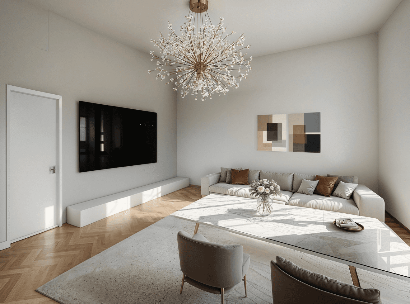 Dzīvoklis izceļas ar pārdomātu plānojumu un mūsdienīgu, dizainera radītu interjera koncepciju. Tiek piedāvāta pilna apdare ar augstas kvalitātes materiāliem – jau uzstādīta santehnika (Villeroy & Boch), kā arī iebūvēti apgaismes risinājumi. Griestu augstums līdz 3,5 metriem piešķir telpai plašuma un gaismas sajūtu.