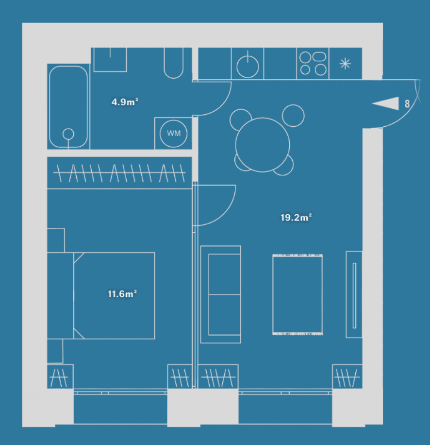 Visi dzīvokļi tiek pārdoti ar pilnu apdari. Projektā pieejami 1–3 istabu dzīvokļi ar platībām no 33 līdz 47 m², kas piemēroti gan vienam cilvēkam, gan pāriem vai nelielām ģimenēm, kā arī investīcijai.