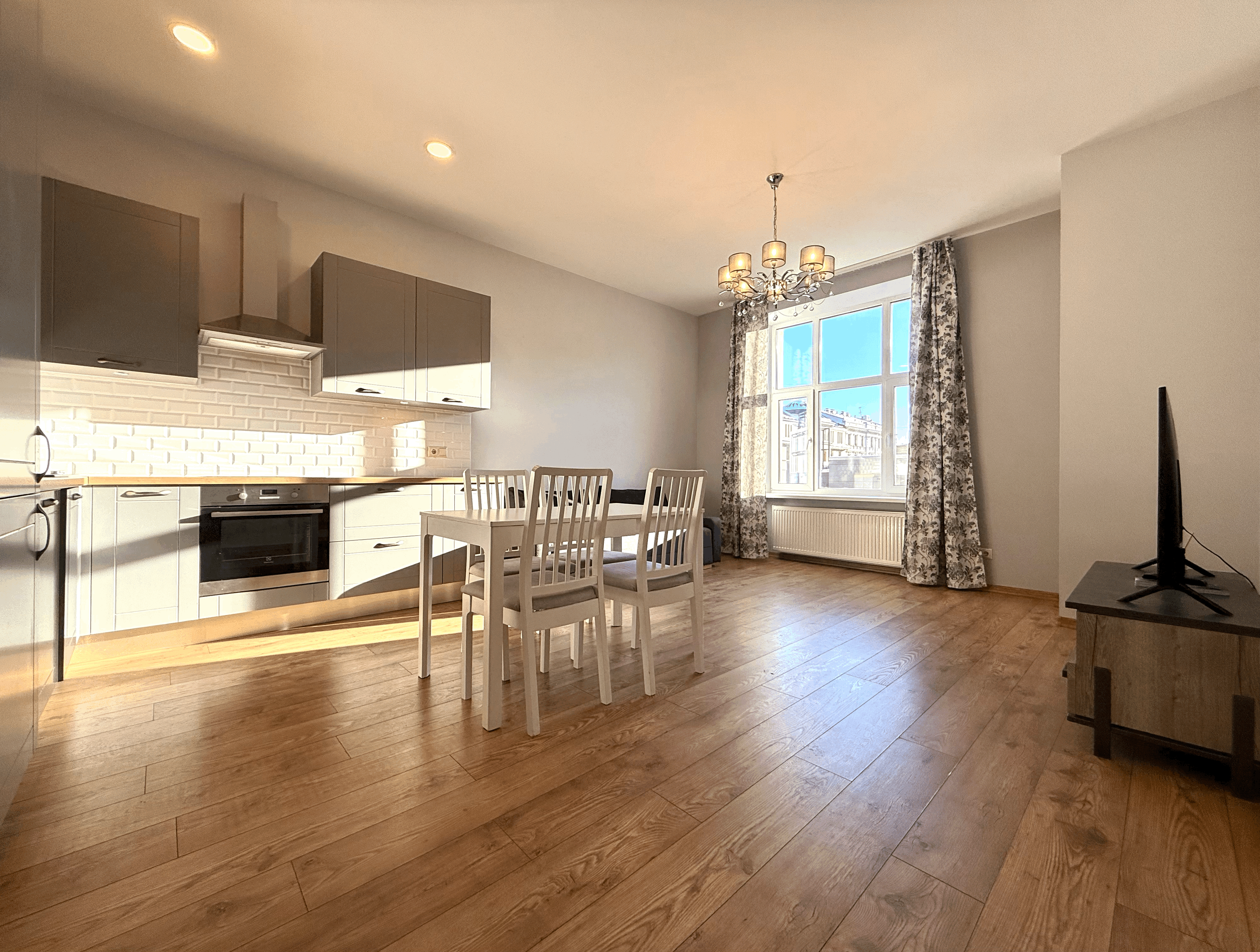 A sunny and modern 2-room apartment is available in the very center of Riga.
