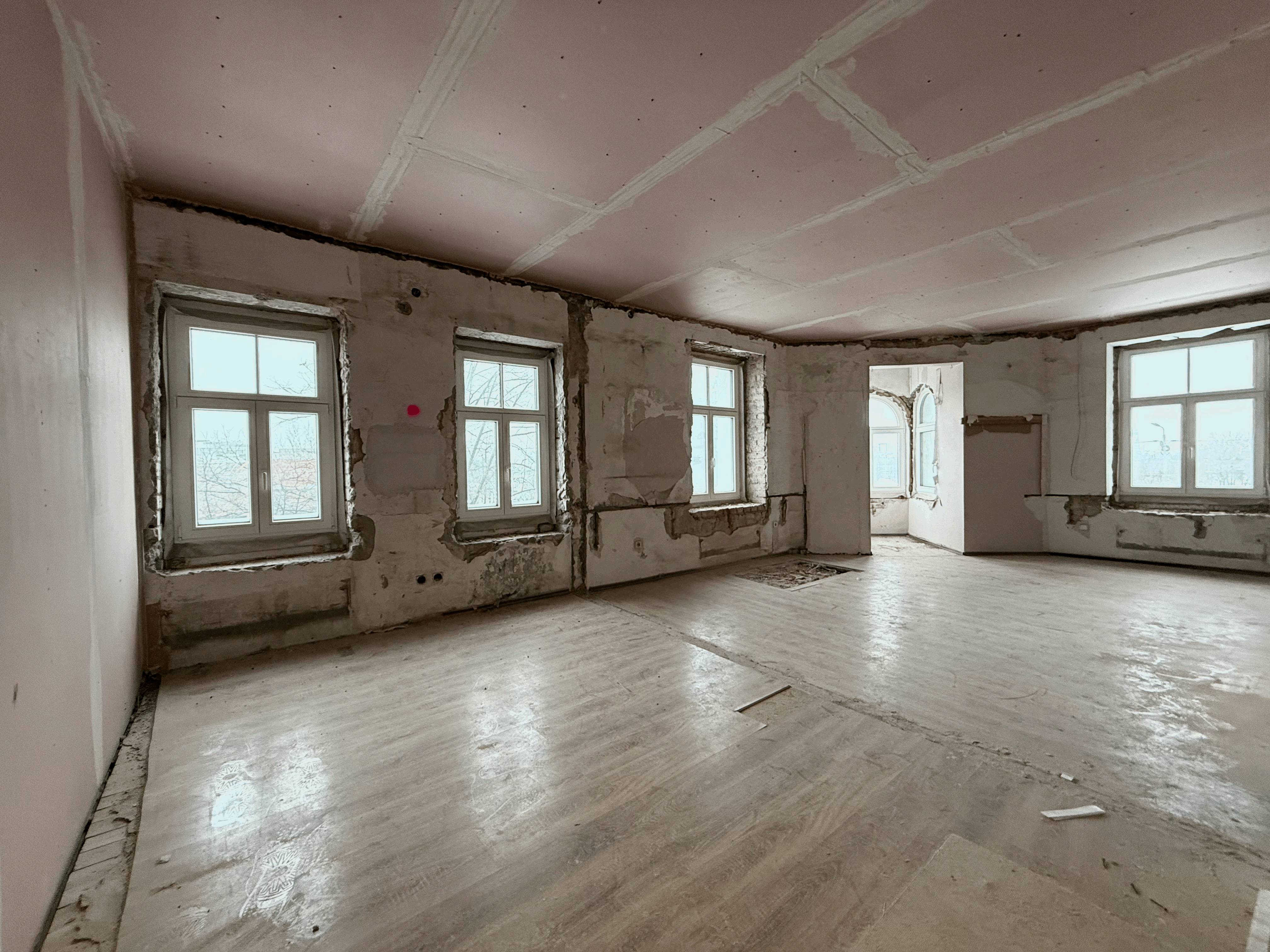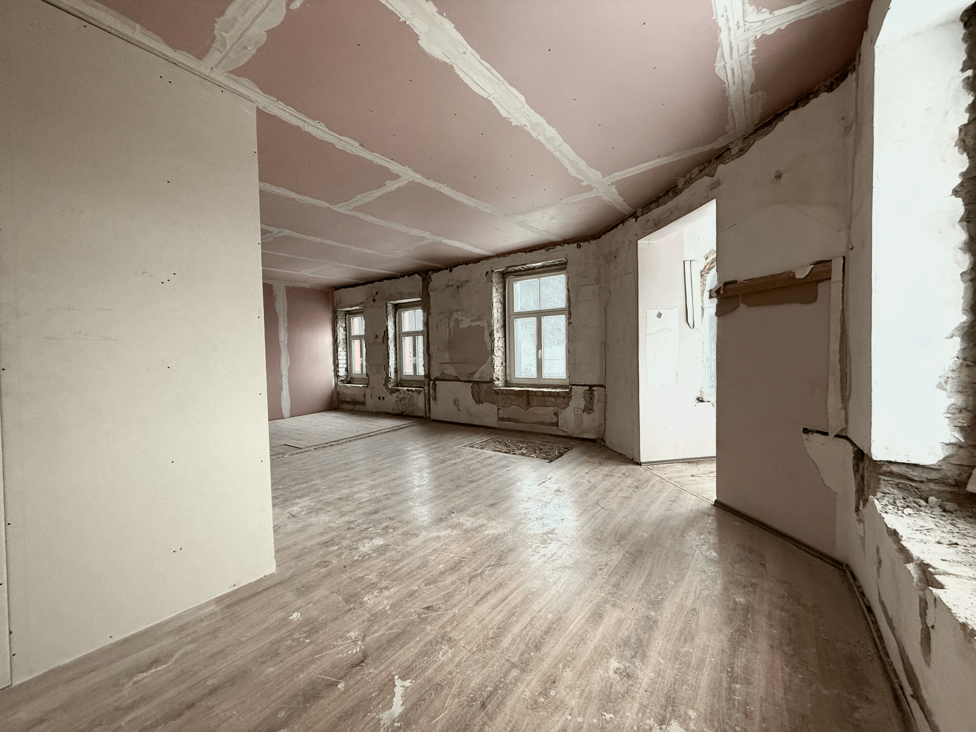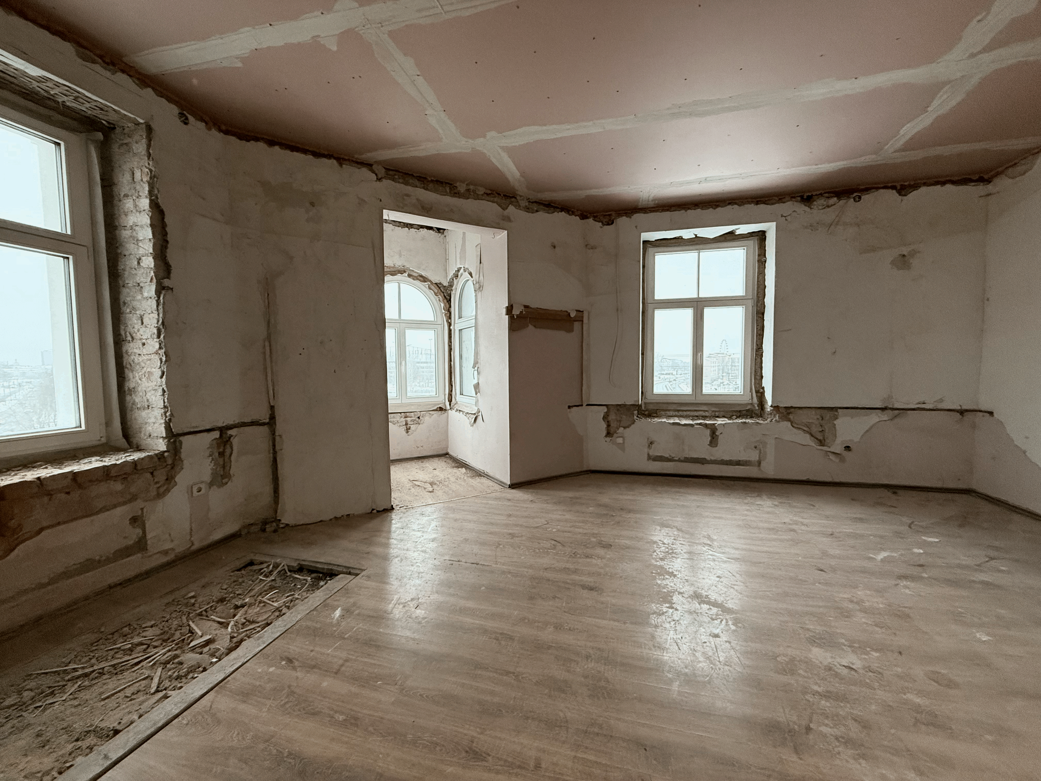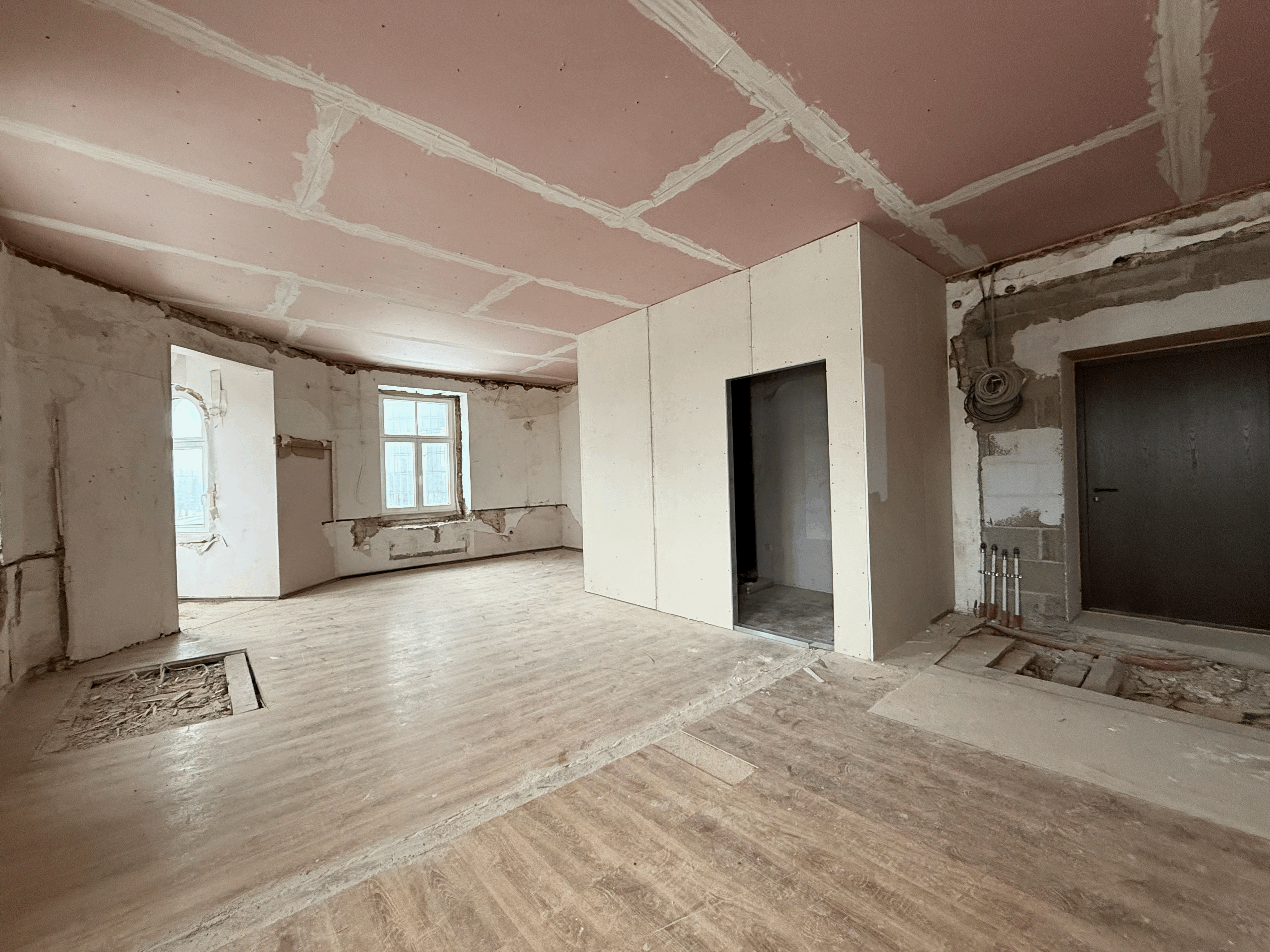 Dzīvoklis sagatavots tālākiem iekšdarbiem, ievilktas komunikācijas