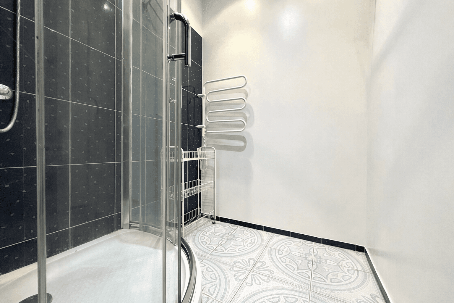 Layout: Living room combined with a kitchen area, two separate bedrooms, and a bathroom with a shower. The apartment is furnished and fully equipped for comfortable living.