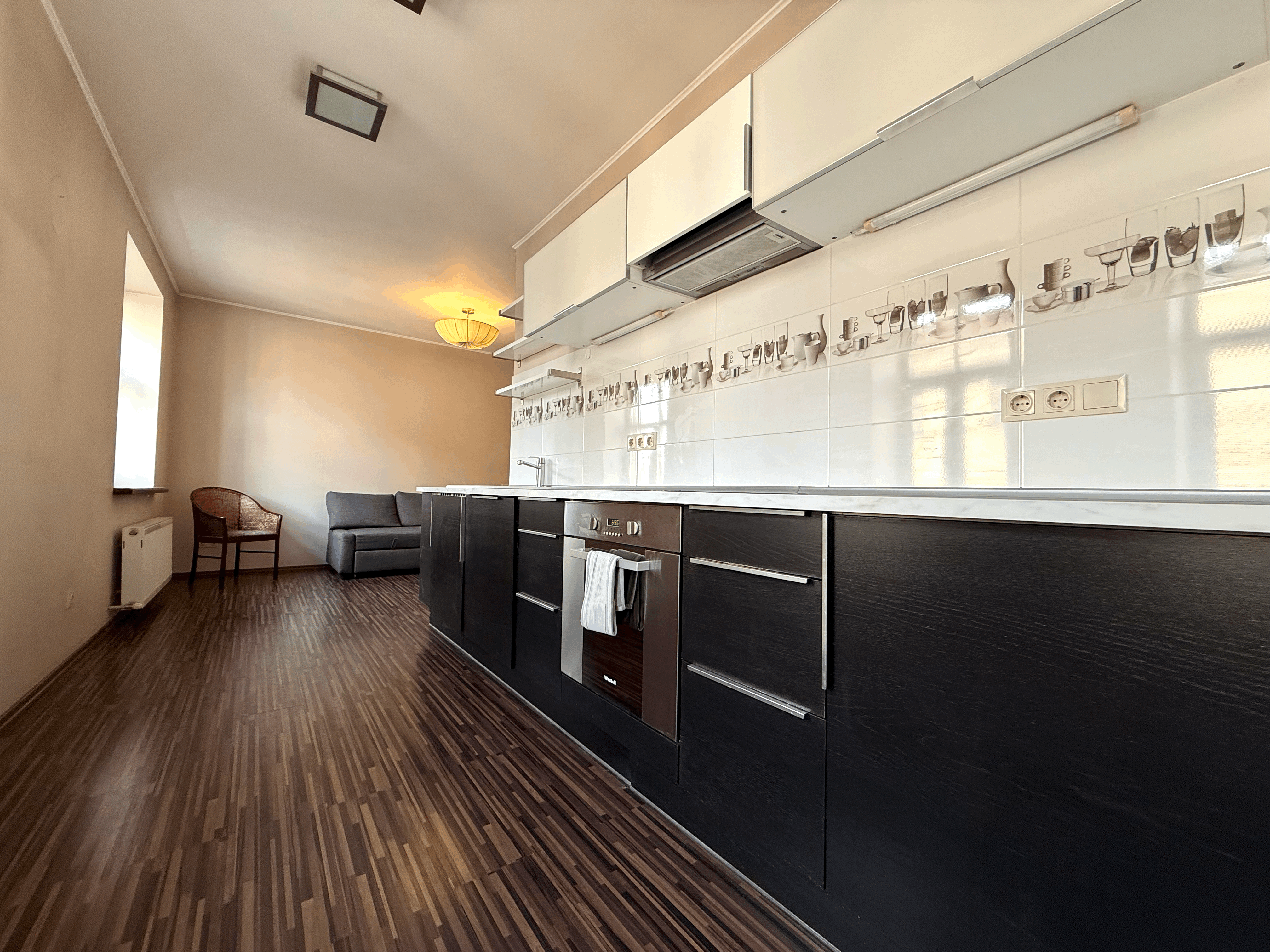 A bright and spacious three-room apartment for rent in a prime location in the center of Riga, in a renovated pre-war building.