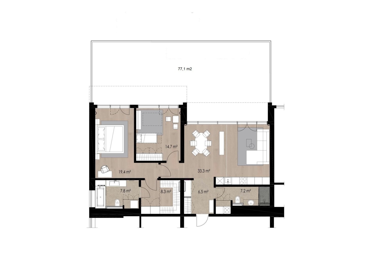 3-istabu dzīvoklis 100 m no jūras ar 77 m² terasi – Dubulti