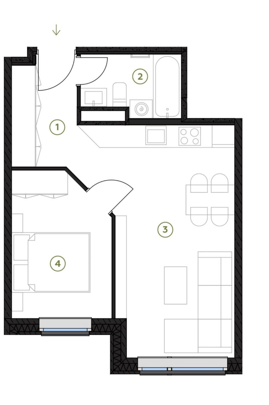 Pārdošanā 2 istabu dzīvoklis projektā “Kuldīgas Parks” Gregora ielā 2b.