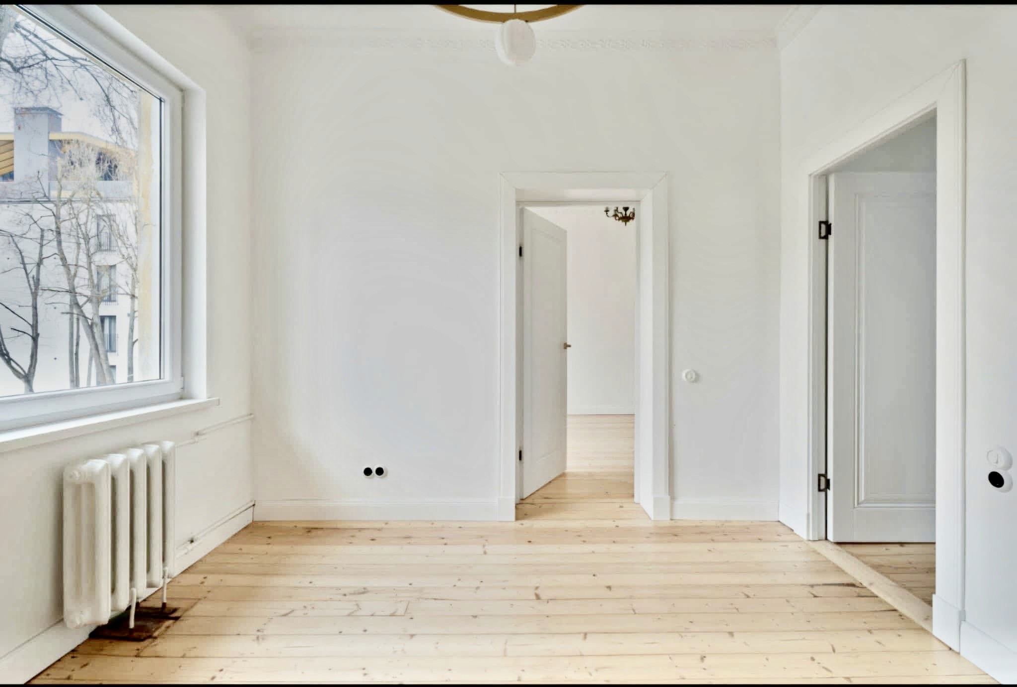 Renovācijas laikā izmantoti kvalitatīvi materiāli un uzticamu zīmolu santehnika (Villeroy & Boch, Grohe). Pilnībā nomainīta elektroinstalācija, uzstādītas jaunas metāla ārdurvis. Atjaunotās īsta koka grīdas piešķir mājoklim īpašu siltumu un eleganci.
