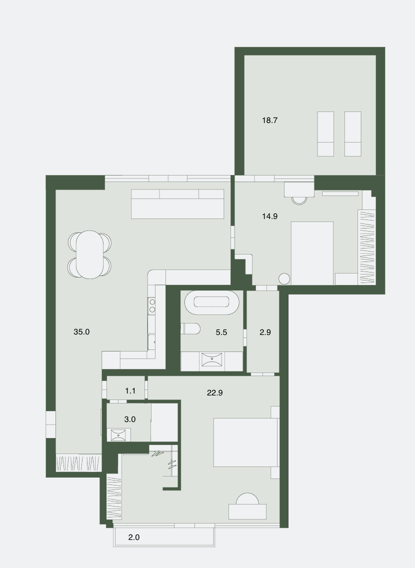 Rezidencē pieejami plaši dzīvokļi ar augstiem griestiem, klasisku interjeru, vēsturiskiem kamīniem, liftu un velonovietnēm, no loga paveras skats uz Kronvalda parku