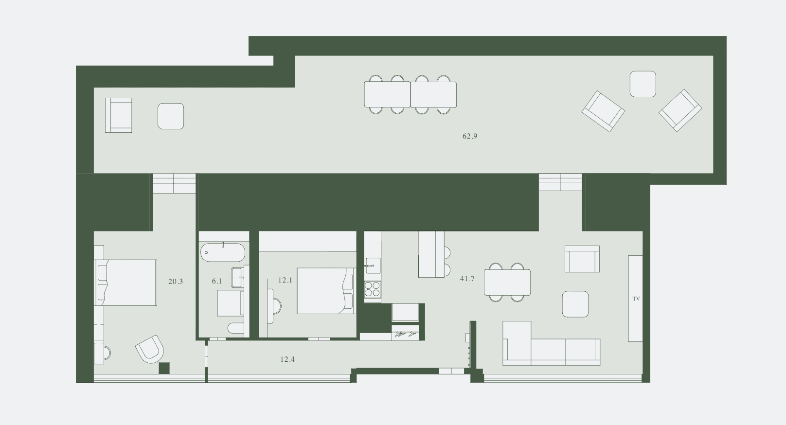 Rezidencē pieejami plaši dzīvokļi ar augstiem griestiem, klasisku interjeru, vēsturiskiem kamīniem, liftu un velonovietnēm, no loga paveras skats uz Kronvalda parku