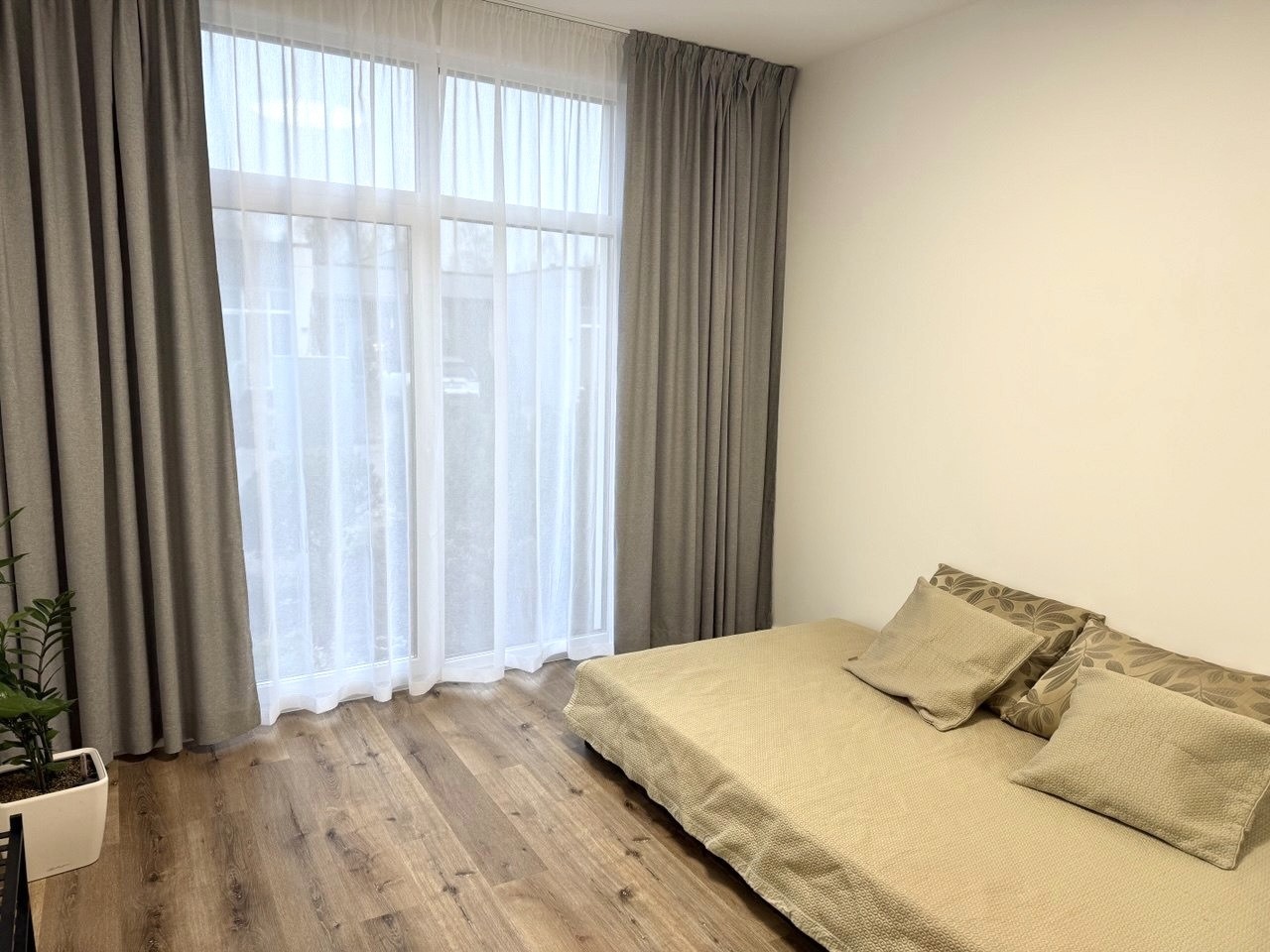 A bright and fully furnished apartment in a terraced house with a terrace and a private yard is available for long-term rent. The house was built in 2024.