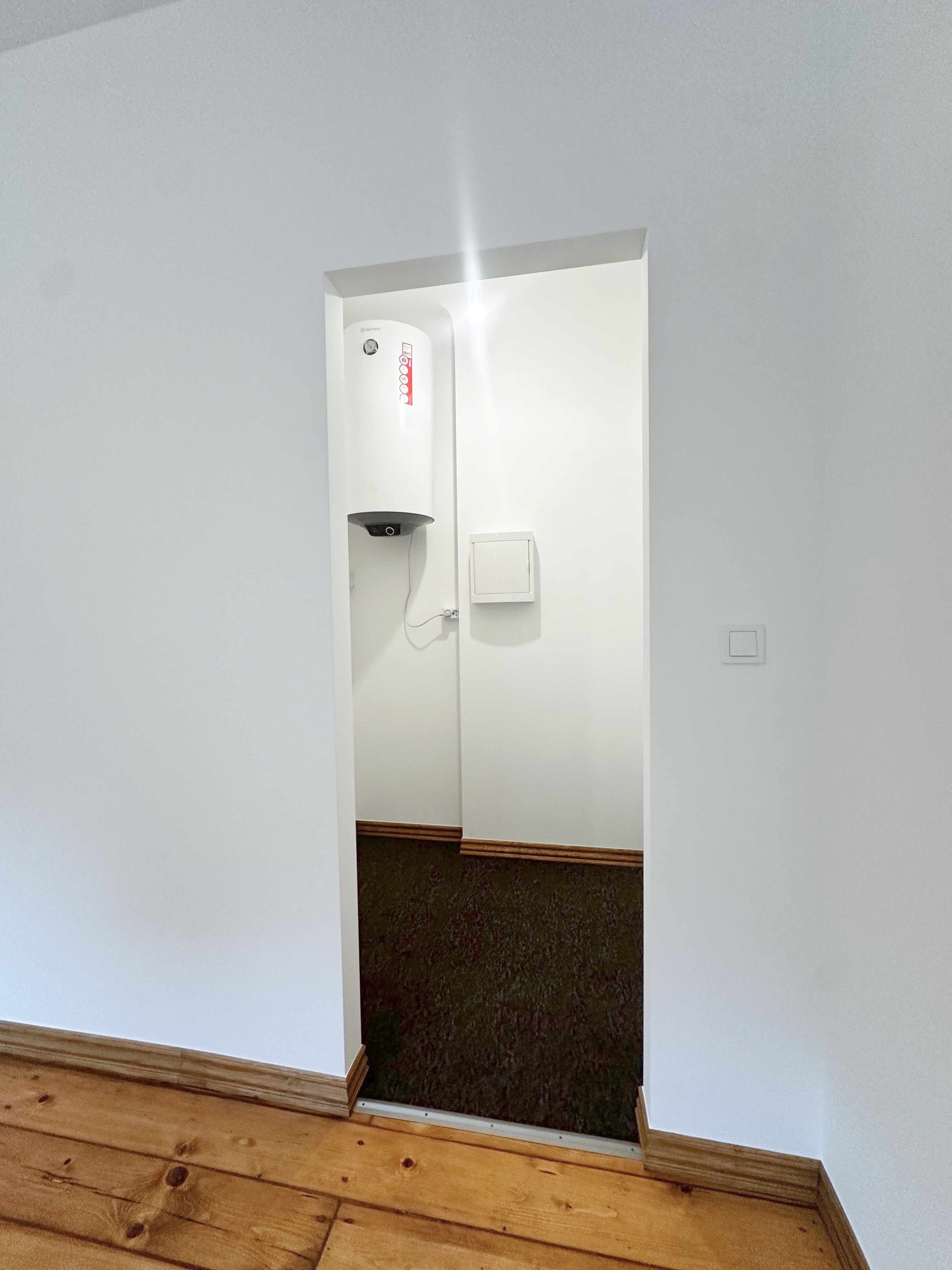 guļamistaba ar ieejamo skapi, kurā arī atrodas boileris