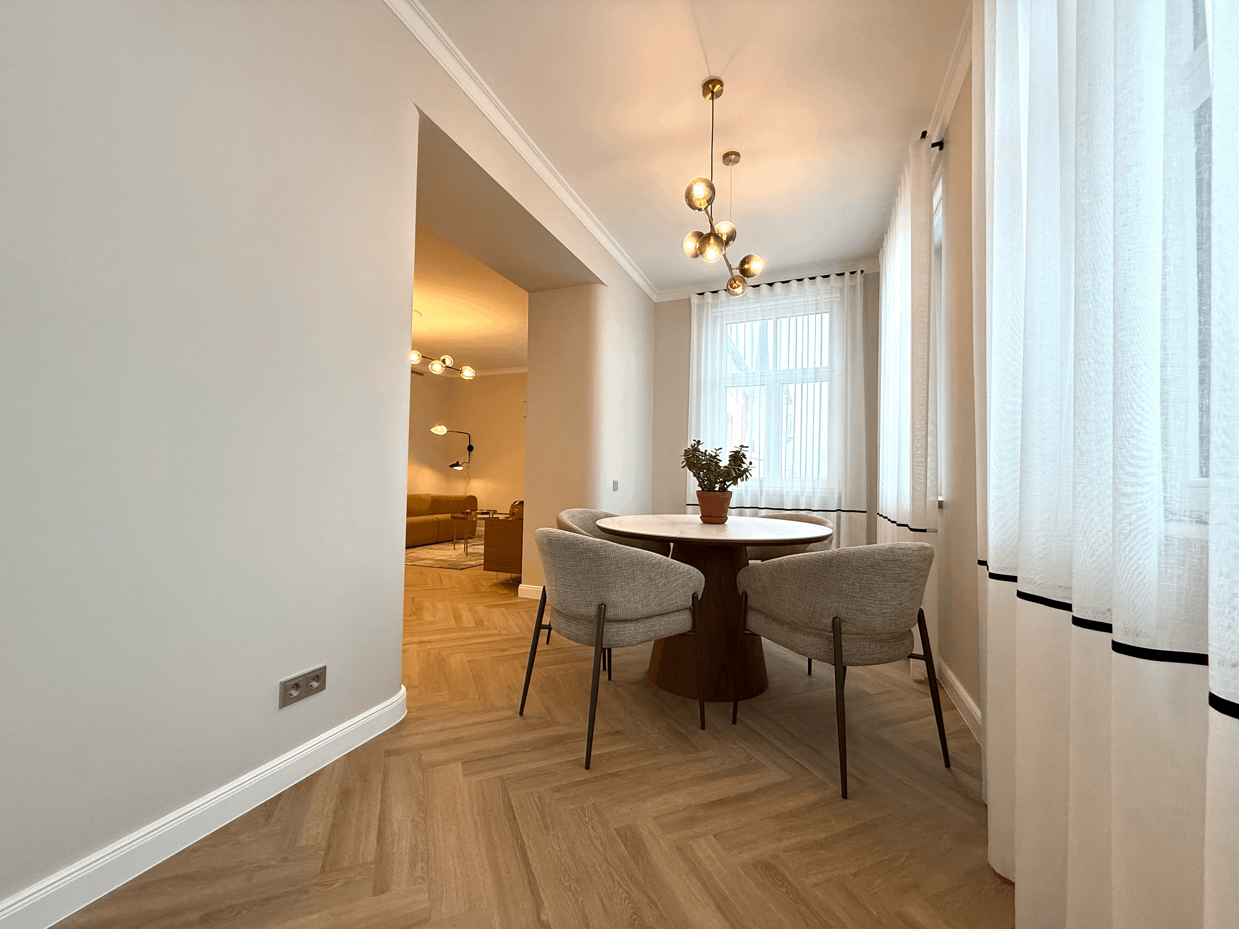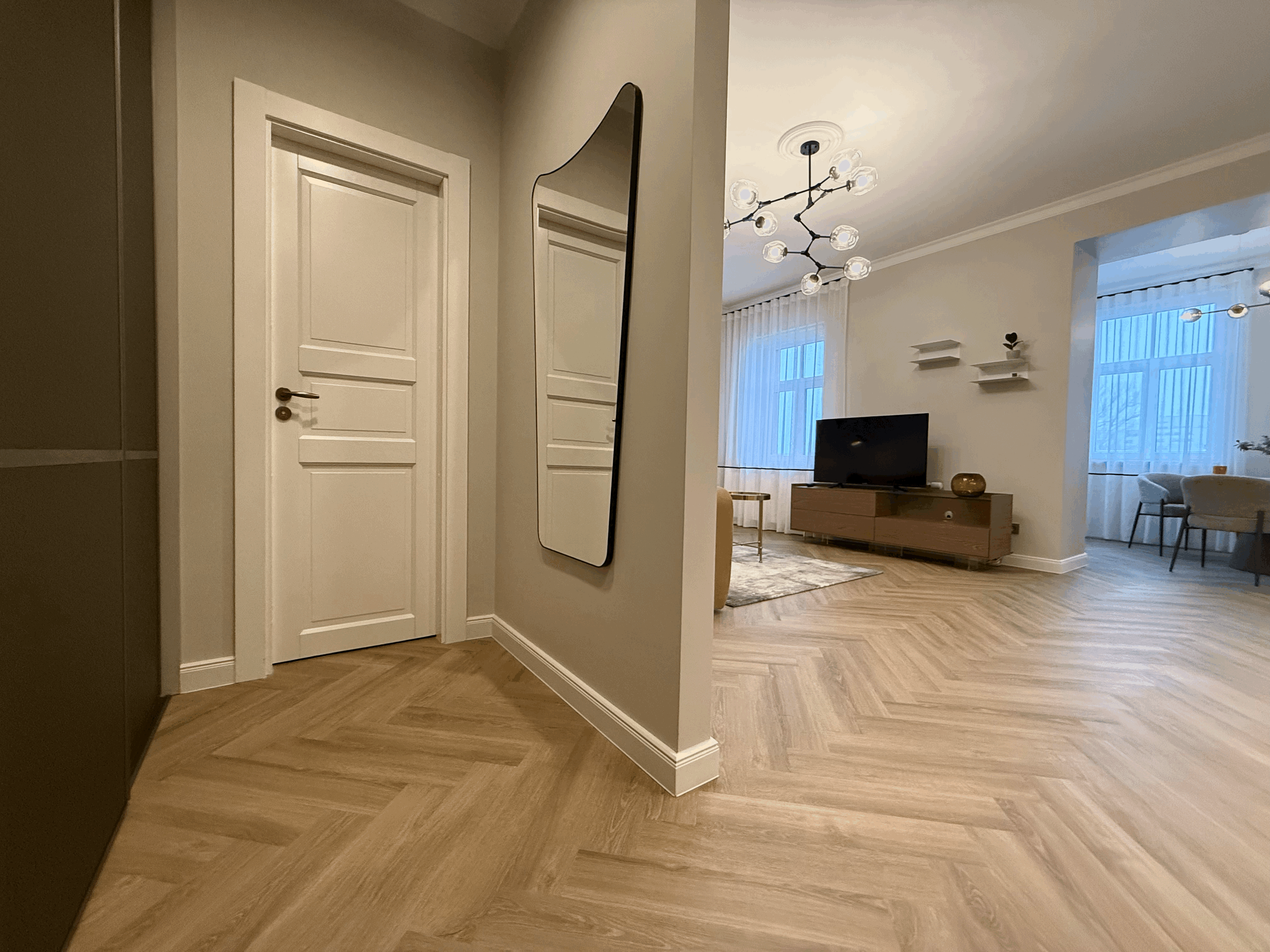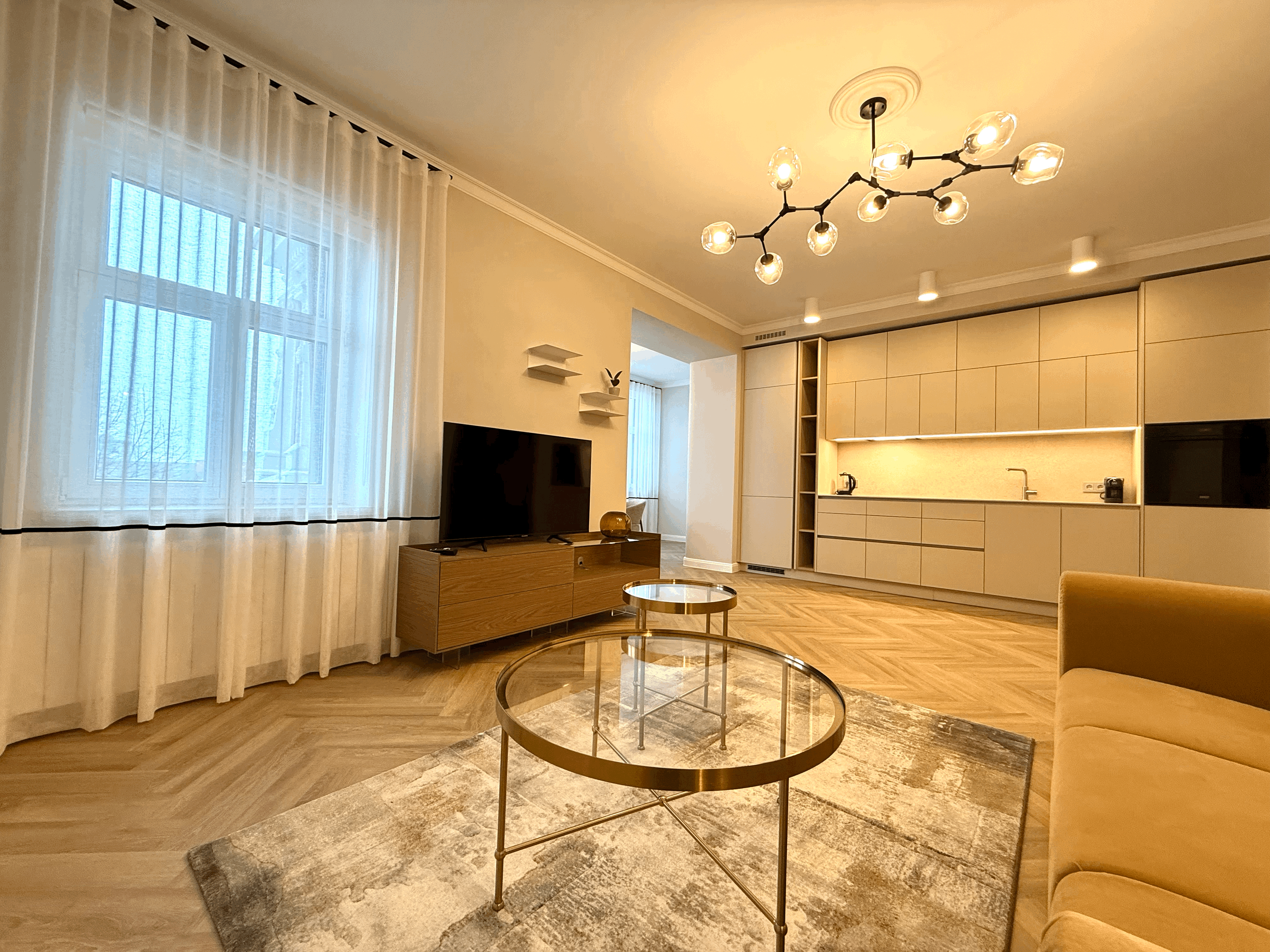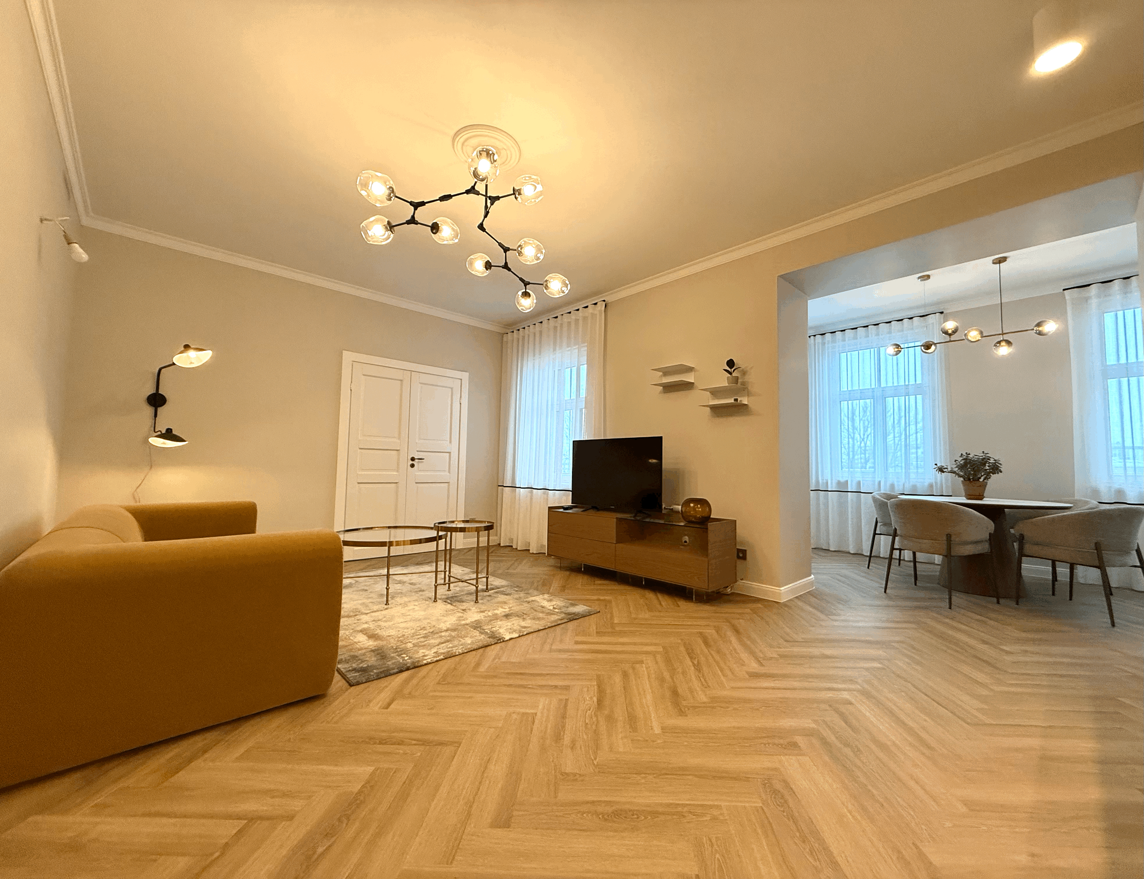 A cozy, bright apartment with a well-thought-out design is available for rent. The apartment is brand new and located in a beautifully renovated four-storey building. It offers a lovely view over the Daugava River towards the Old Town and the Presidential Palace.