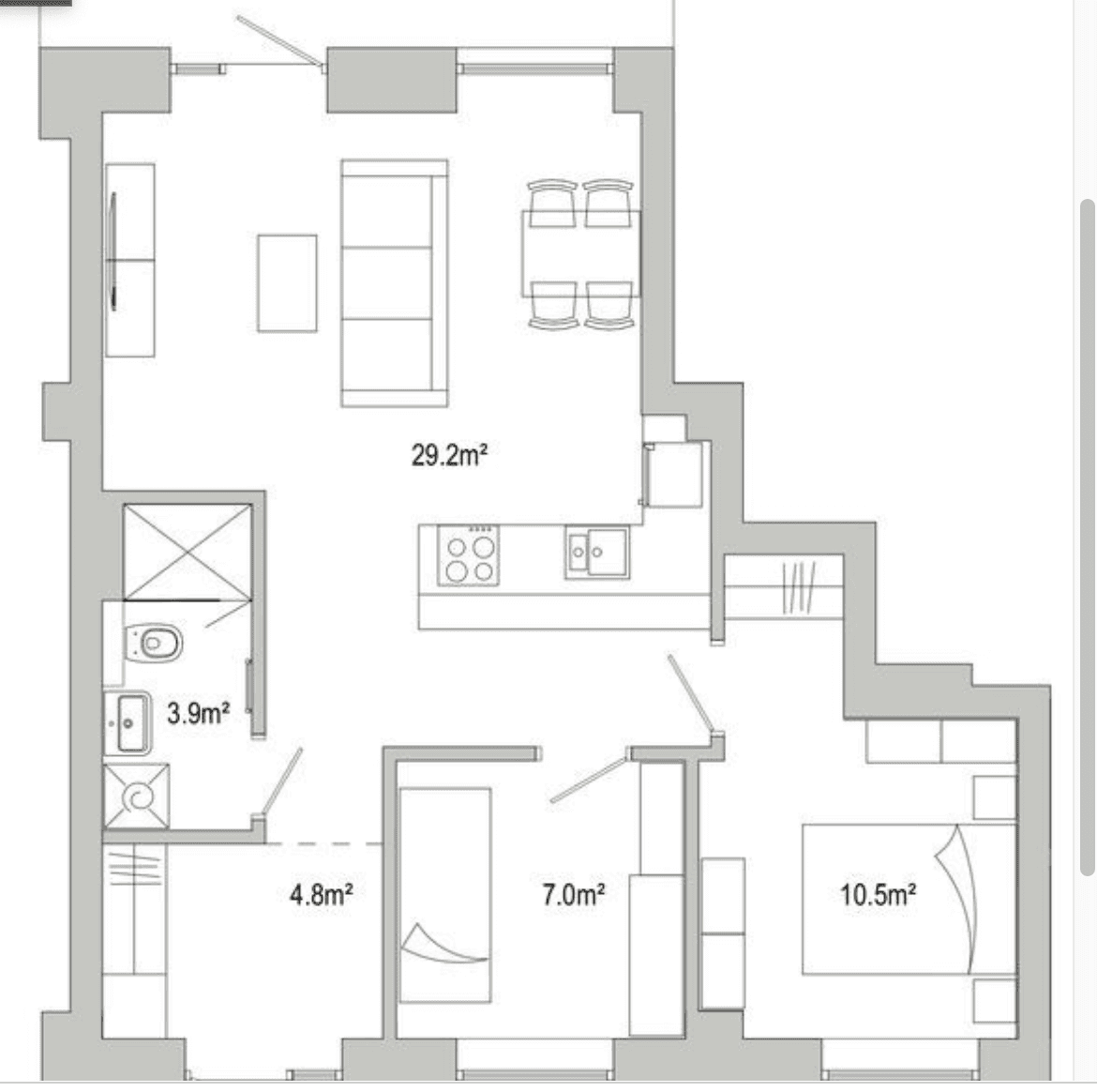 - Papildu priekštelpa pie ieejas, piemērota iebūvēta skapja ierīkošanai.