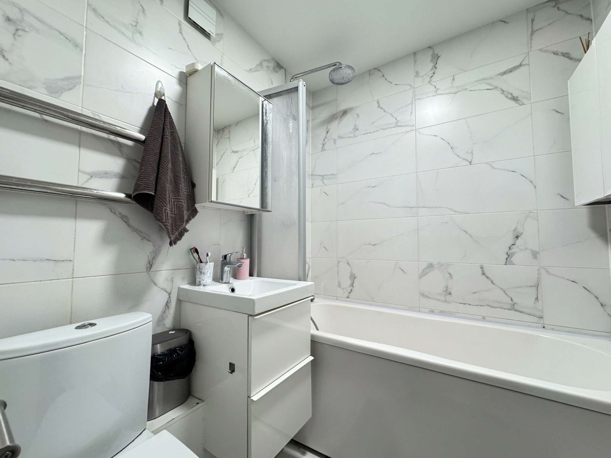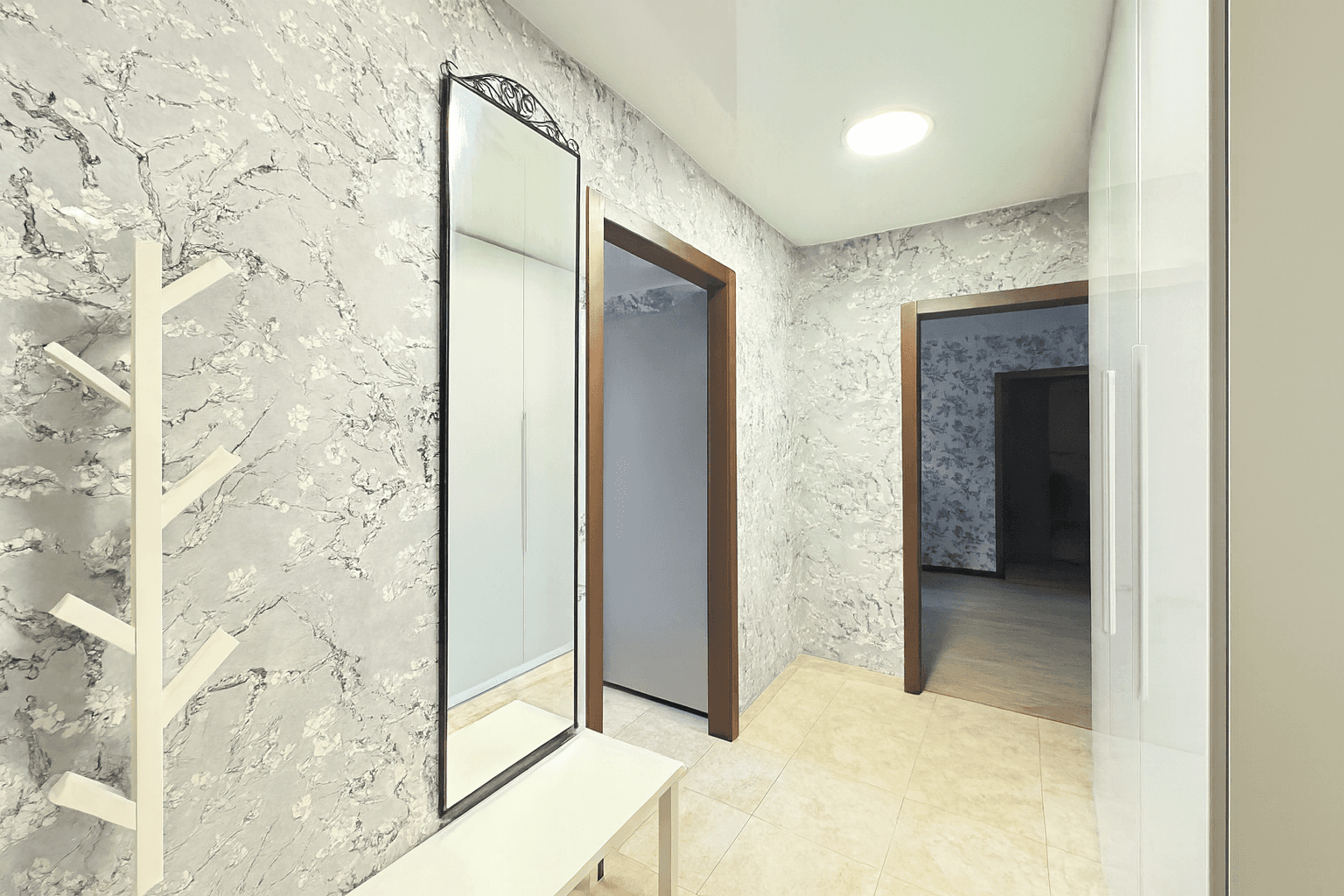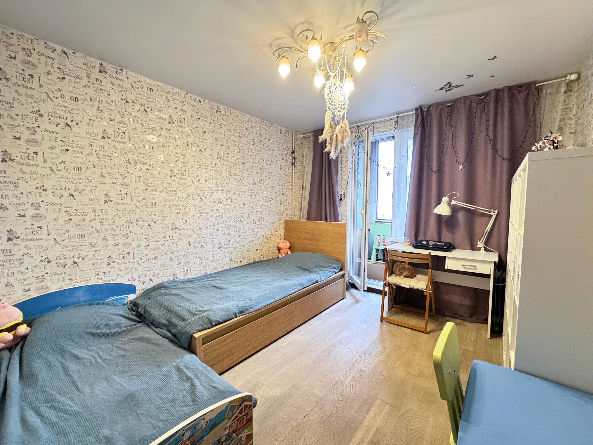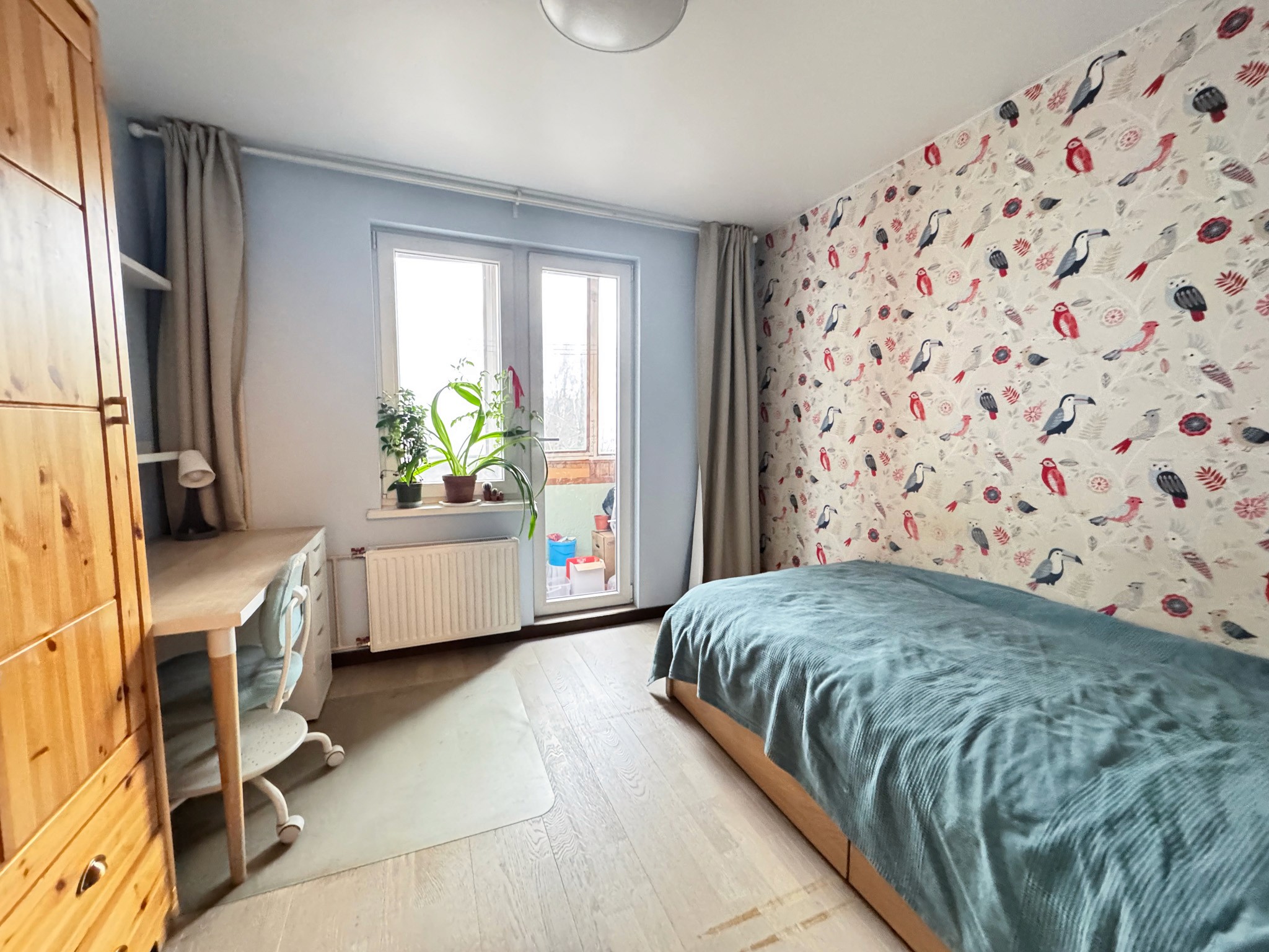 Dzīvoklī ir viesistaba, virtuve, kurā ir ledusskapis, plīts, tvaika nosūcējs, cepeškrāsns un trauku mazgājamā mašīna. Ir trīs izolētas guļamistabas un divi sanmezgli, vienā veļas mazgājamā mašīna un vanna. Priekšnamā ir iebūvēts skapis.