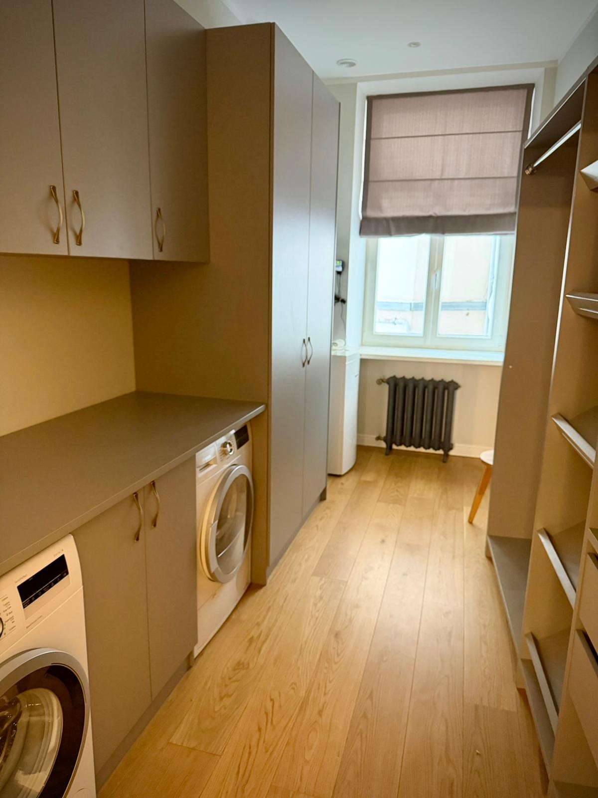 Layout: a living room, two bedrooms, a separate kitchen, a utility room/walk-in wardrobe, and a bathroom. The layout is functional and suitable for comfortable living. Heating: gas heating.