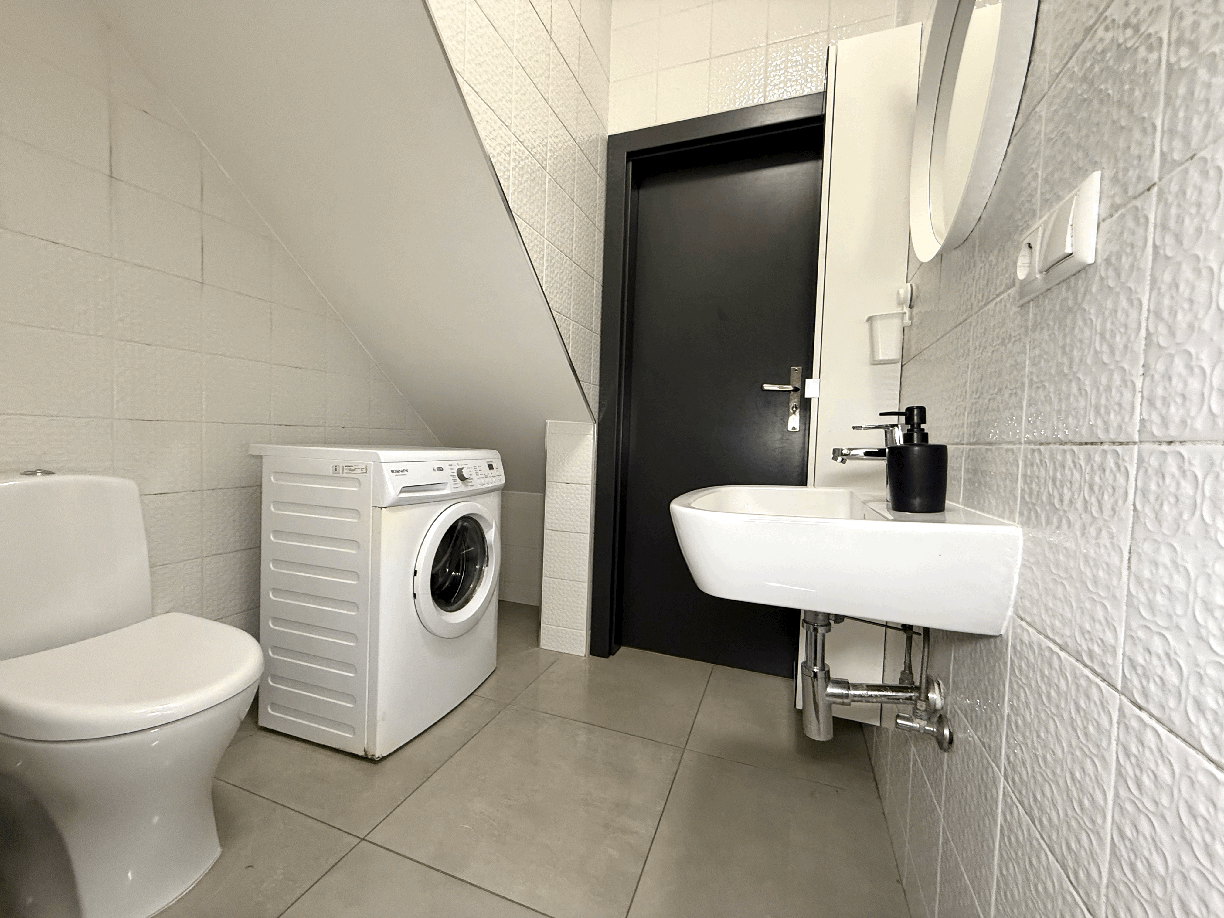 Dzīvokļa kopējā platība ir 80 m². Tam ir privāta ieeja un sava terase. Dzīvoklis izvietots divos stāvos. Mājdzīvnieki ir atļauti. Pieejama autostāvvieta pagalmā par 50 € mēnesī.