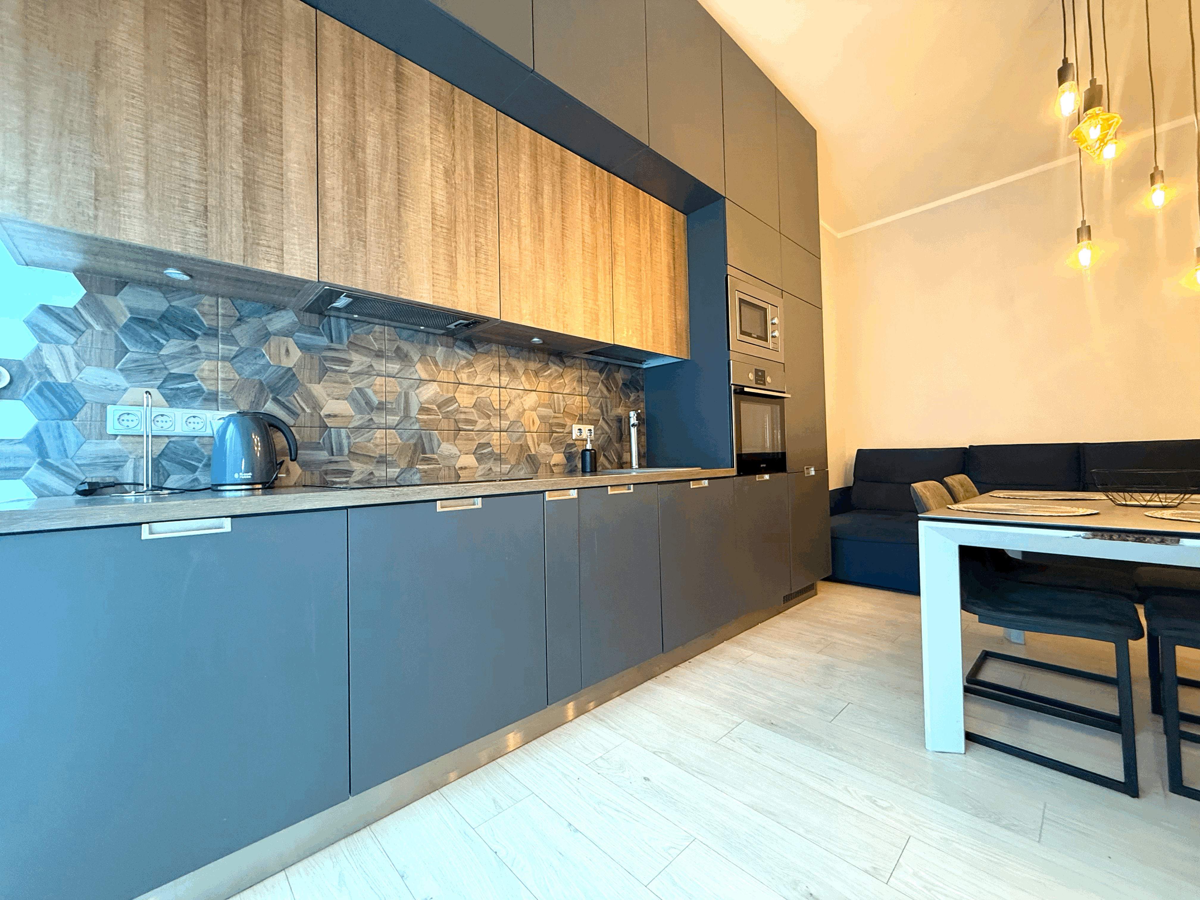 A modern and high-quality 3-room apartment is available for long-term rent in Āgenskalns, in the residential complex “Kalnciema Kvartāla Rezidences”, Valentīna Street 16.