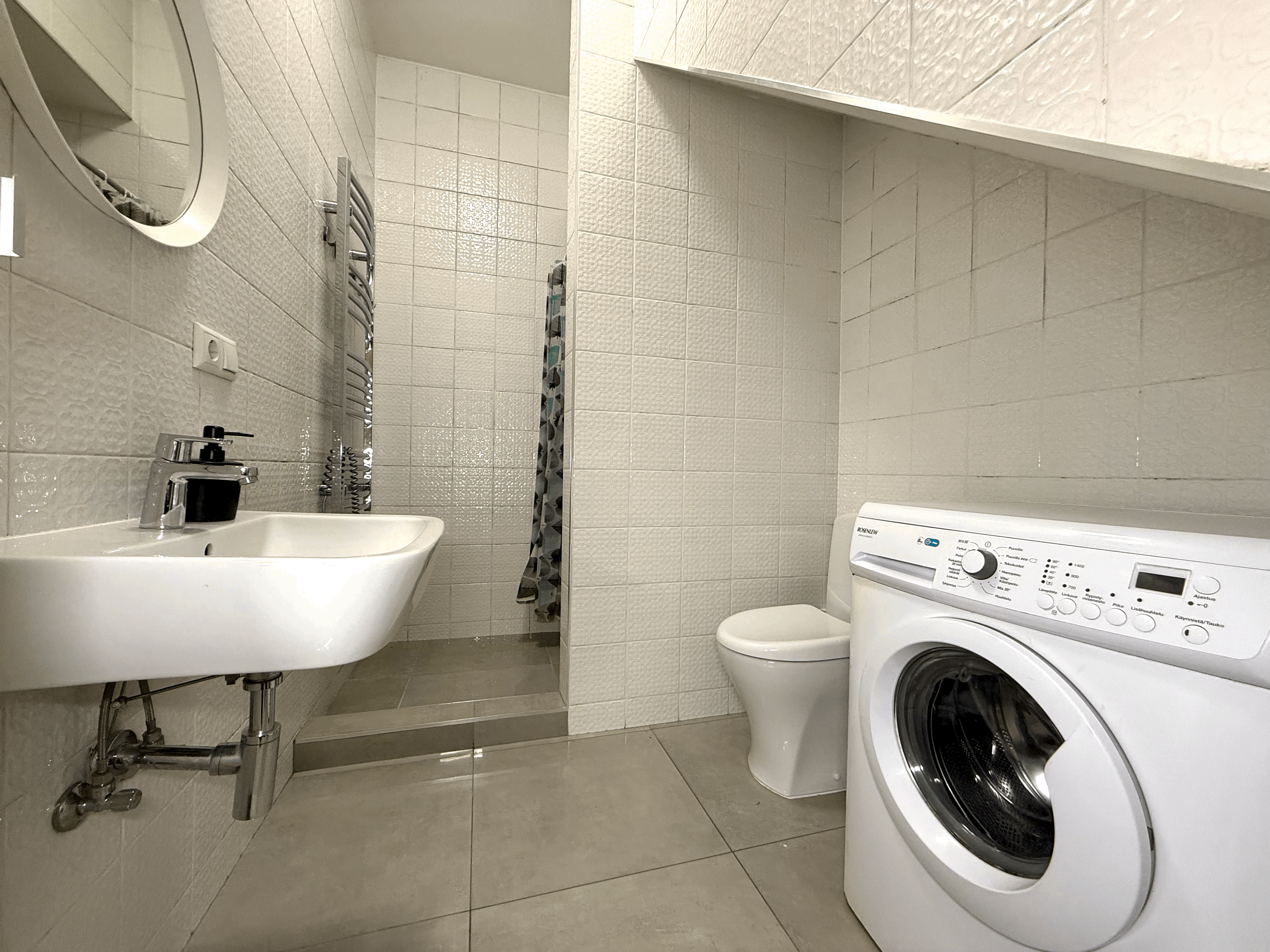 The residential complex has a beautifully landscaped courtyard with recreational areas and a children’s playground. There is a locked storage room for bicycles and strollers. The territory is fenced and equipped with video surveillance. The apartment has its own gas heating system, adjustable radiators, and an individual heat meter.