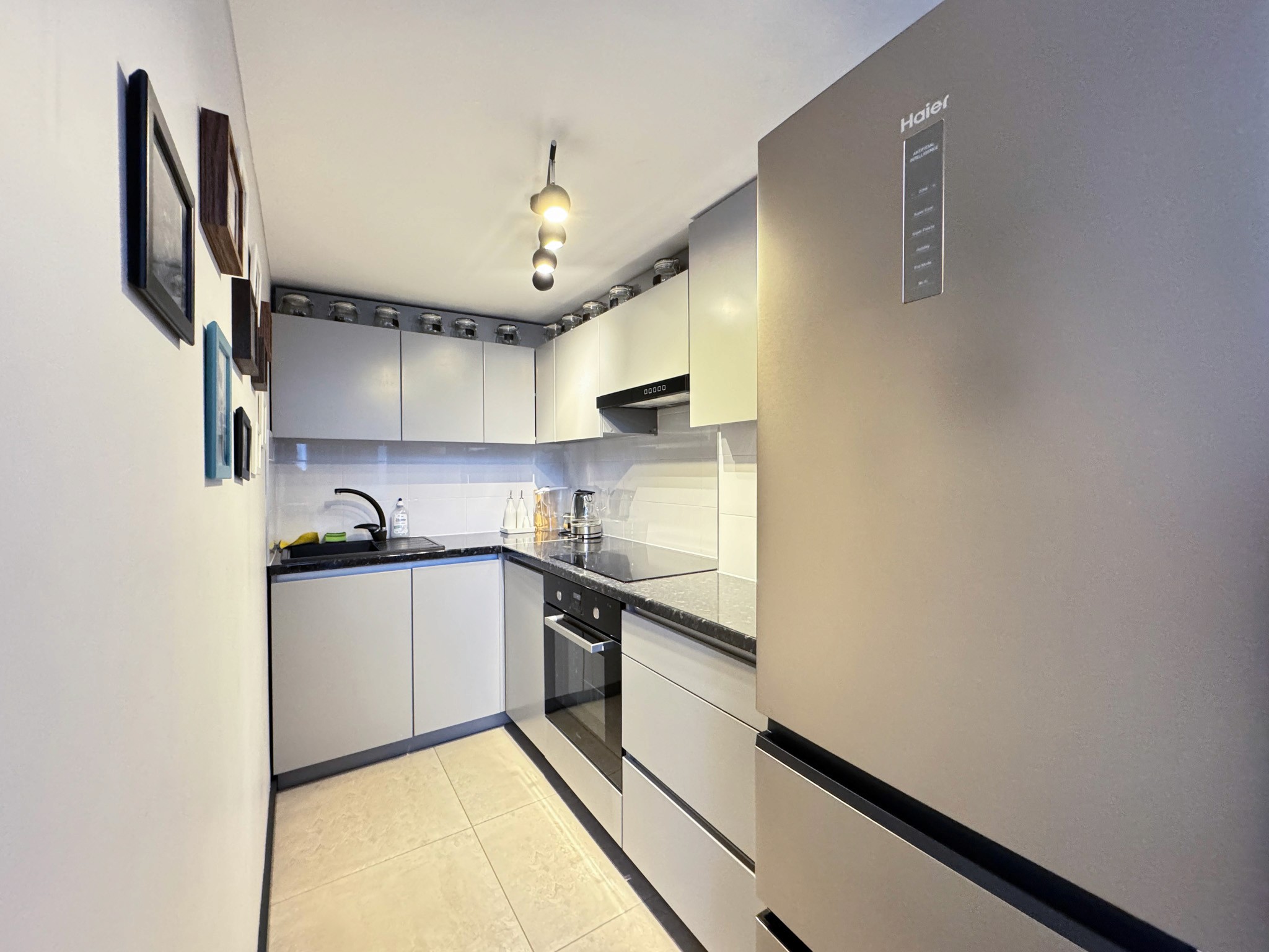 - Viesistaba apvienota ar kompaktu virtuvi;