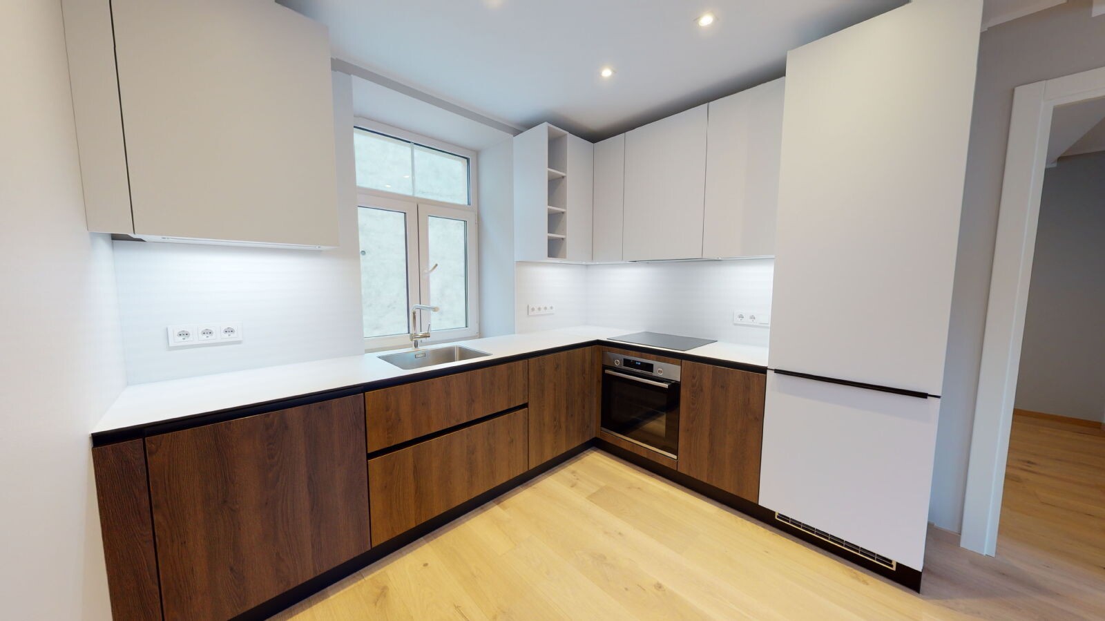 The complex of houses at Artilērijas 26 was completely renovated with an organized and improved surrounding environment, very close to Ziedoņdārzs. We carried out full interior finishing in the apartments, and each apartment was equipped with high-quality German kitchens.