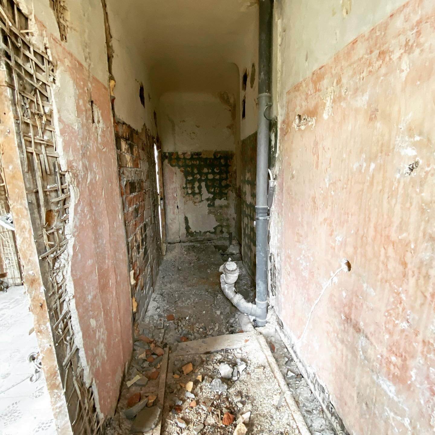 We purchased the property after a fire and restored everything that could be salvaged - the old wooden floors, tiled stoves, and other elements from that time.