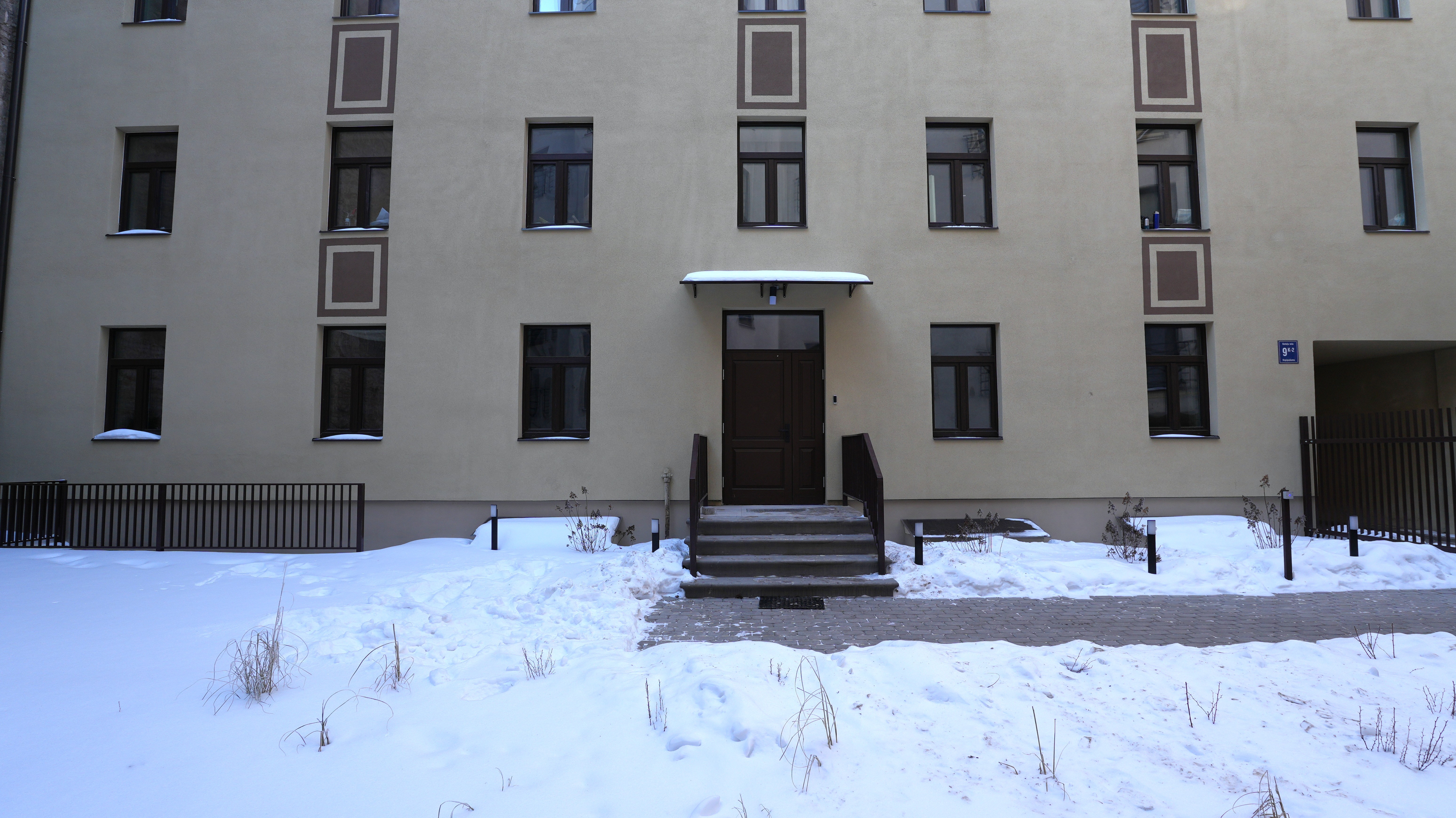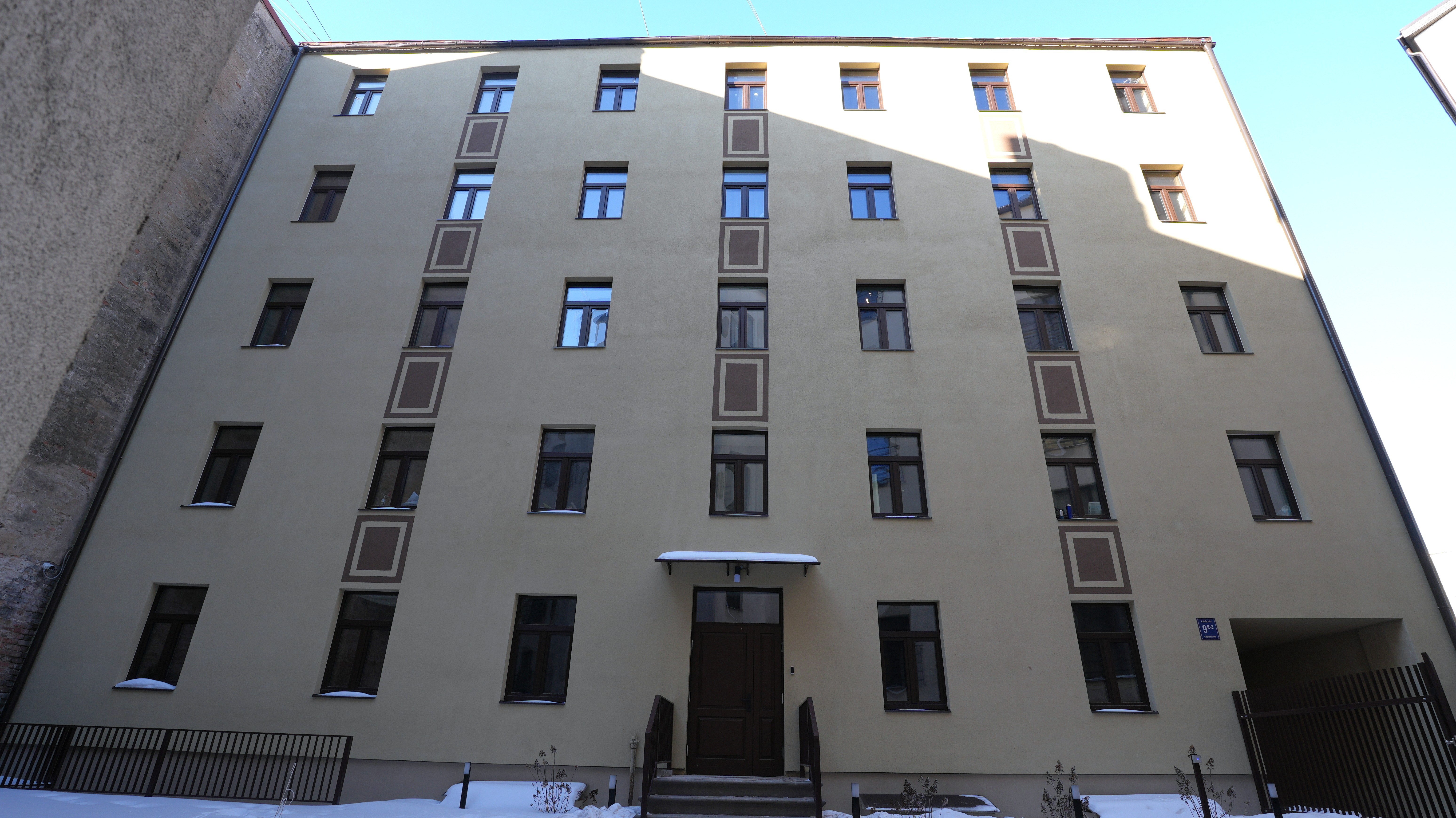 dzīvot ēkā ar atjaunotu fasādi un kāpņu telpu;