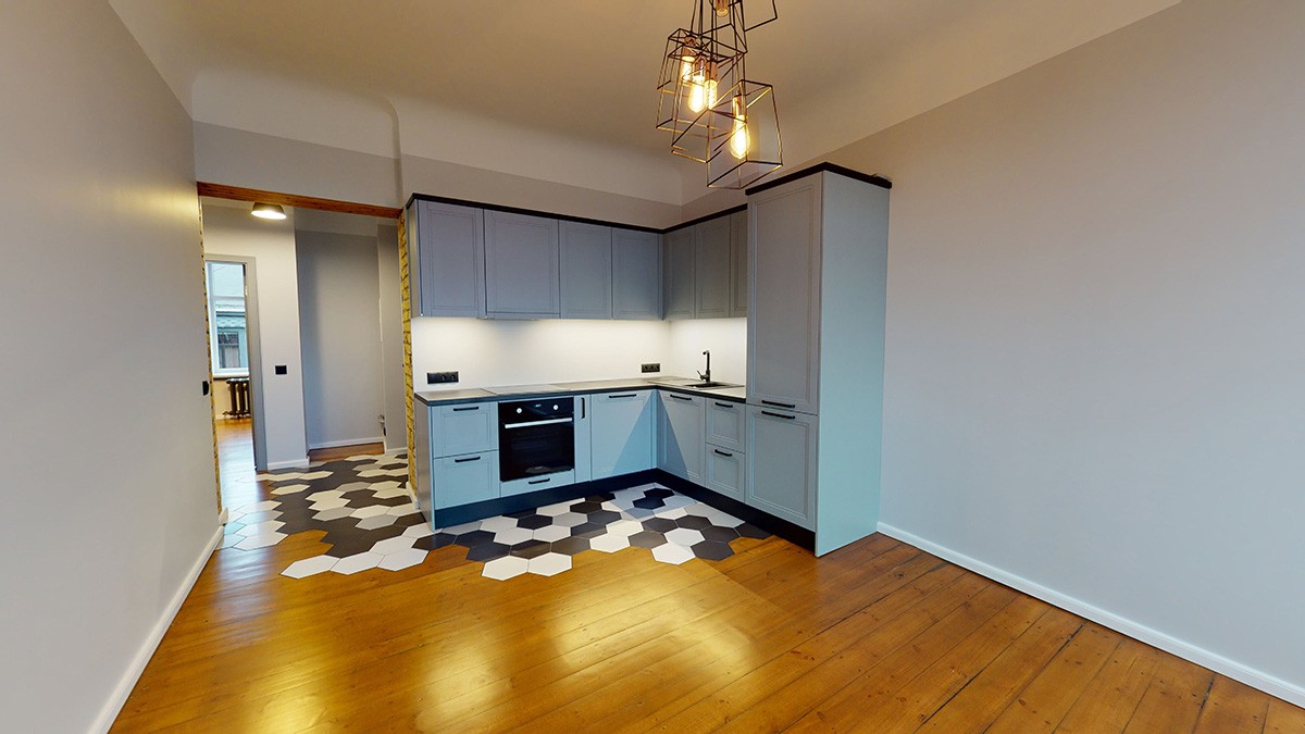We are adventurers and we bought our first property in "Maskačka", a pre-war house with beautiful tiled stoves. As a first project, it took a lot of time, energy, and we successfully acquired the necessary knowledge so that future projects can be managed faster and more professionally. In old buildings, we always try to preserve everything possible that can be saved, and this apartment was no exception. Projects of this type always attract more attention than the so-called "Depo renovation".