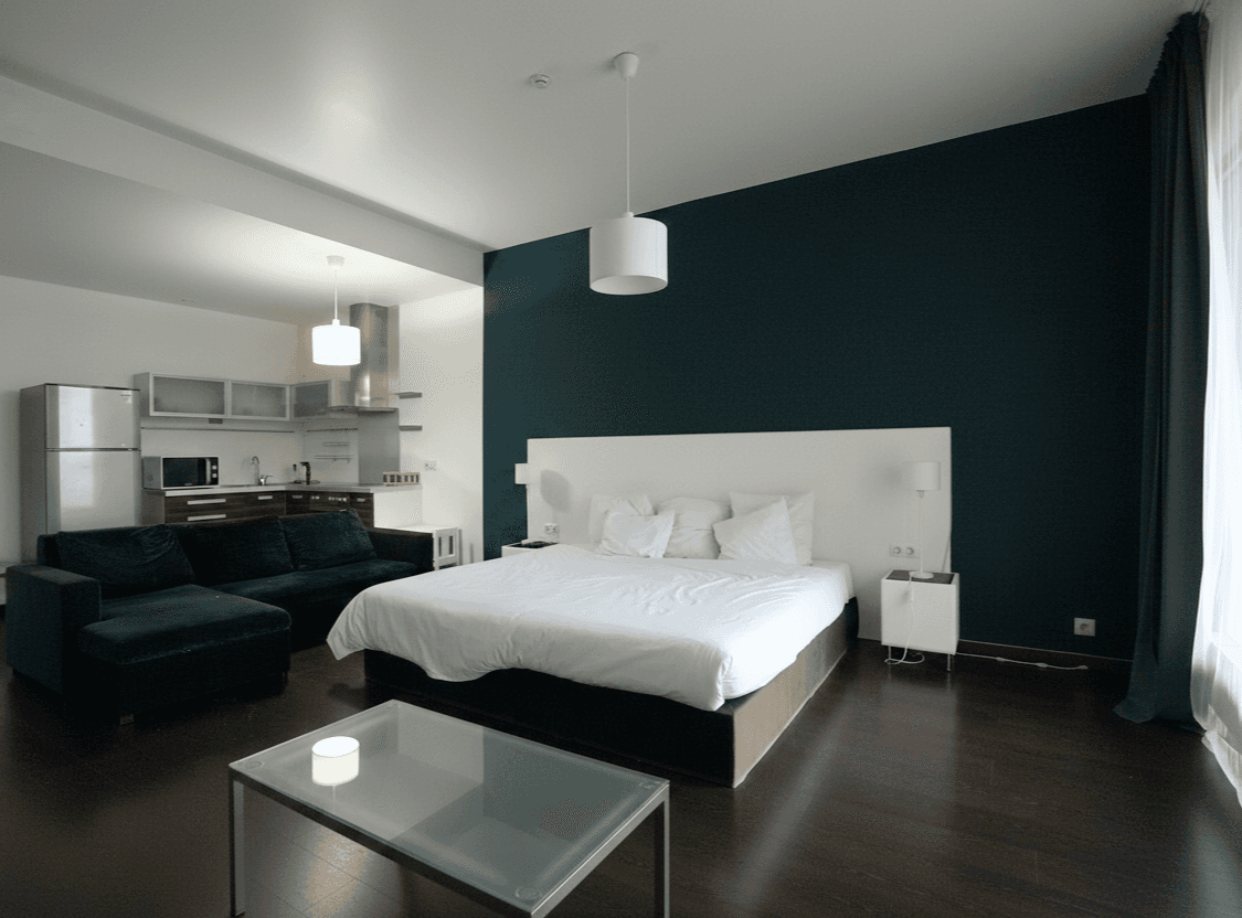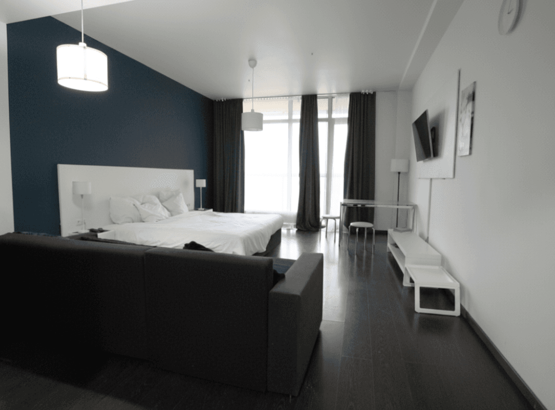 Ienākot dzīvokī ir pieejama iebūvēts drēbju skapis. Veļasmašīna, tualete un vanna vienā sanmezgla istabā. Virtuve, aprīkota ar visu nepieciešamo, savienota ar plašu un gaišu guļamistabu. Ir pieejams arī balkons, un lifts. Kopējā dzīvokļa platība ir 46 м².