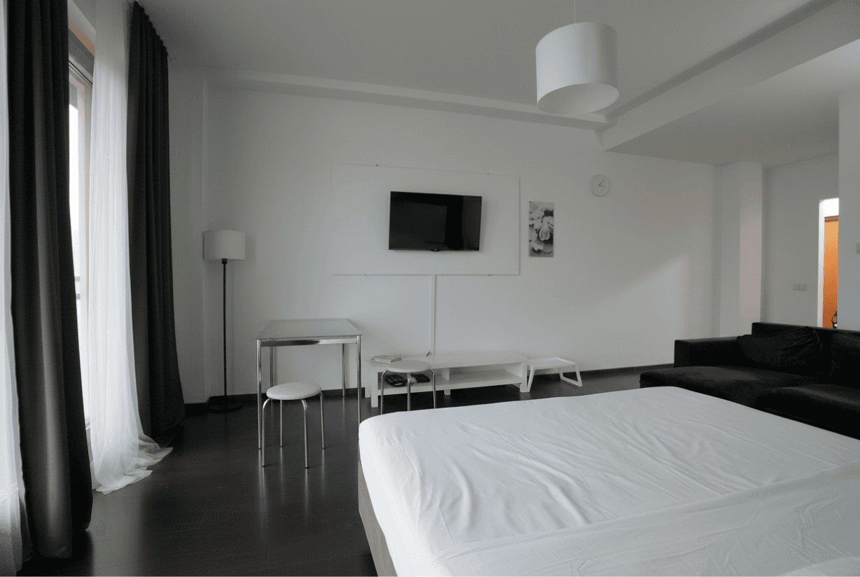 Īrei pieejams 1-istabas studio dzīvoklis, ar pilnu mēbeļu komplektu. Tas atrodas 11 stāvā, Metropolia mājokļu kompleksa ēkā.
