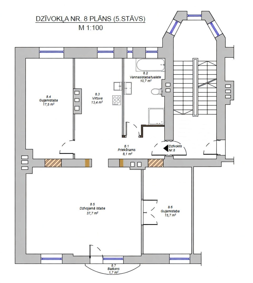 Dzīvoklim ir balkons, augsti griesti un saglabāts vēsturiskais šarms.