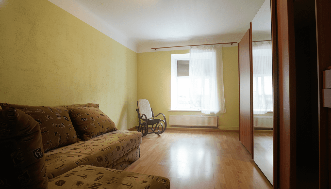 The apartment requires renovation, offering the new owner the opportunity to adapt the layout according to individual needs. Previous layout changes have been officially approved. If desired, the functional arrangement of the rooms can be modified to create a spacious living area and potentially convert the apartment into a three-room layout.