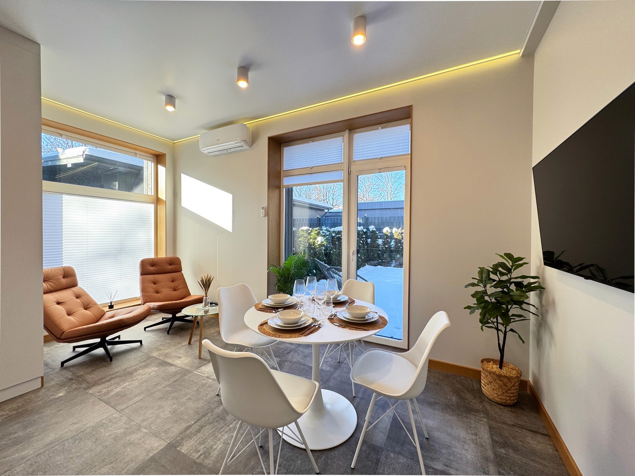 Kotedžai ir sava apkure, apsildāmās grīdas, kā arī privāta terase.
