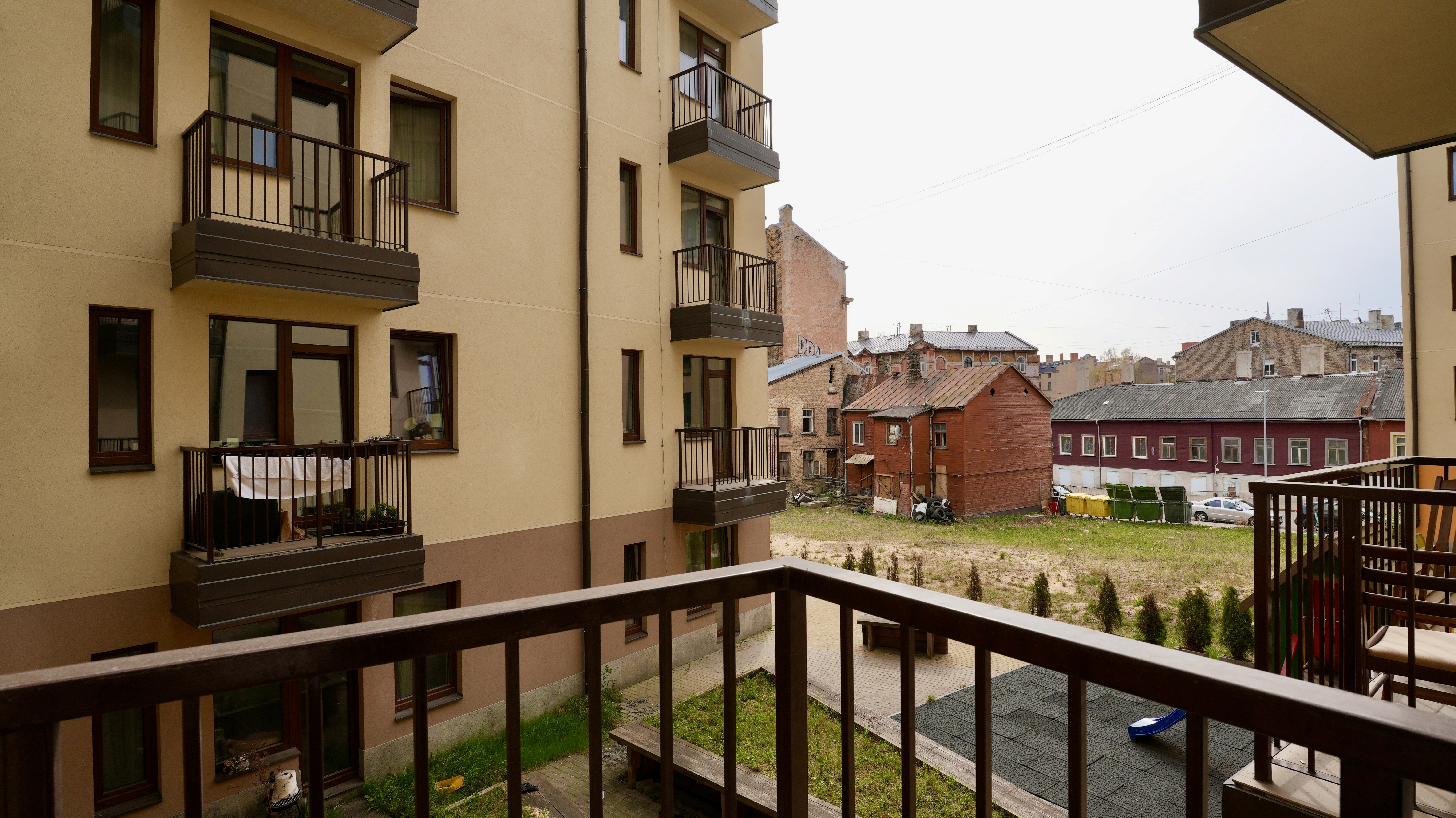 Izīrē mēbelētu 2 istabu dzīvokli ar balkonu.