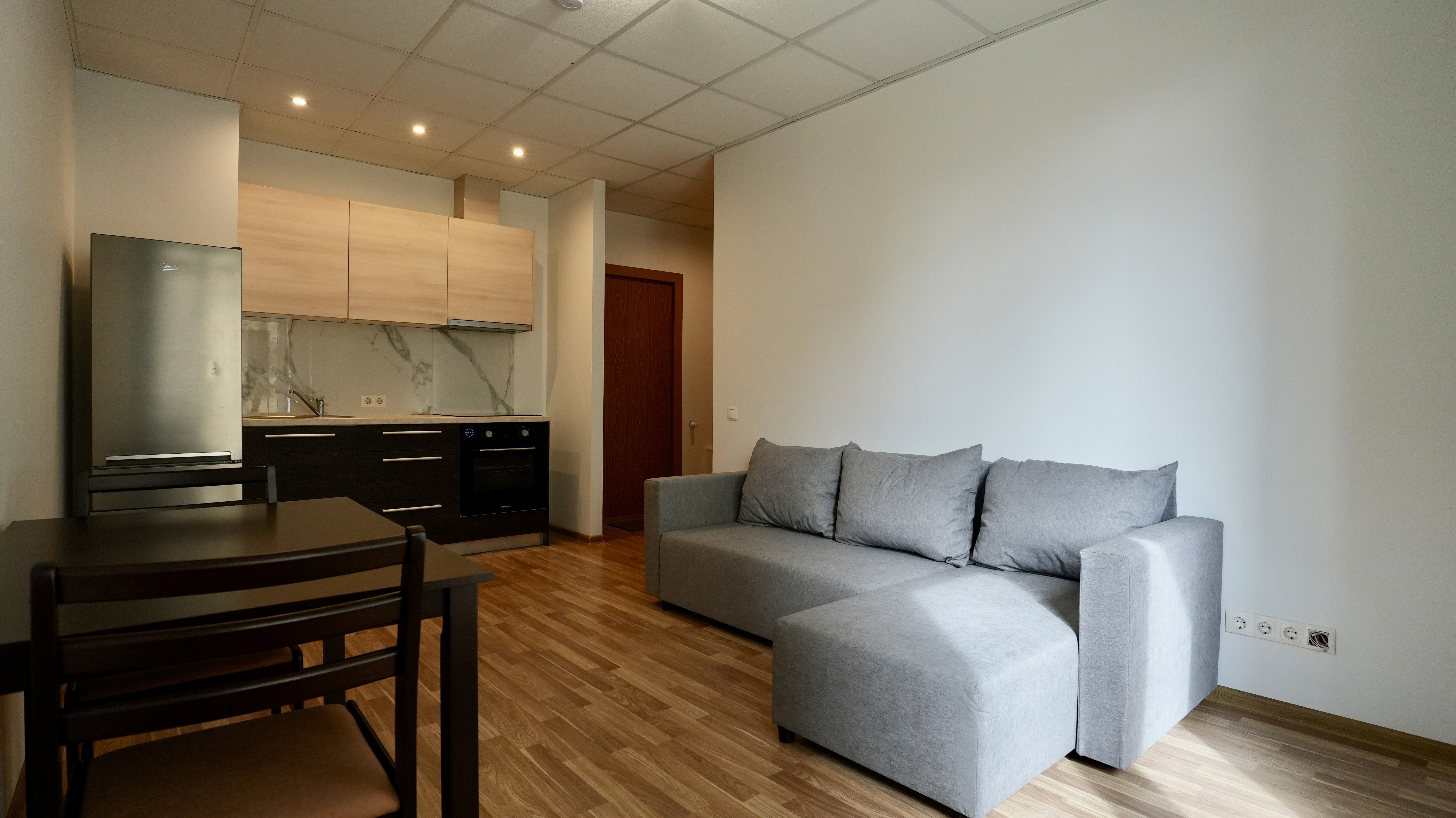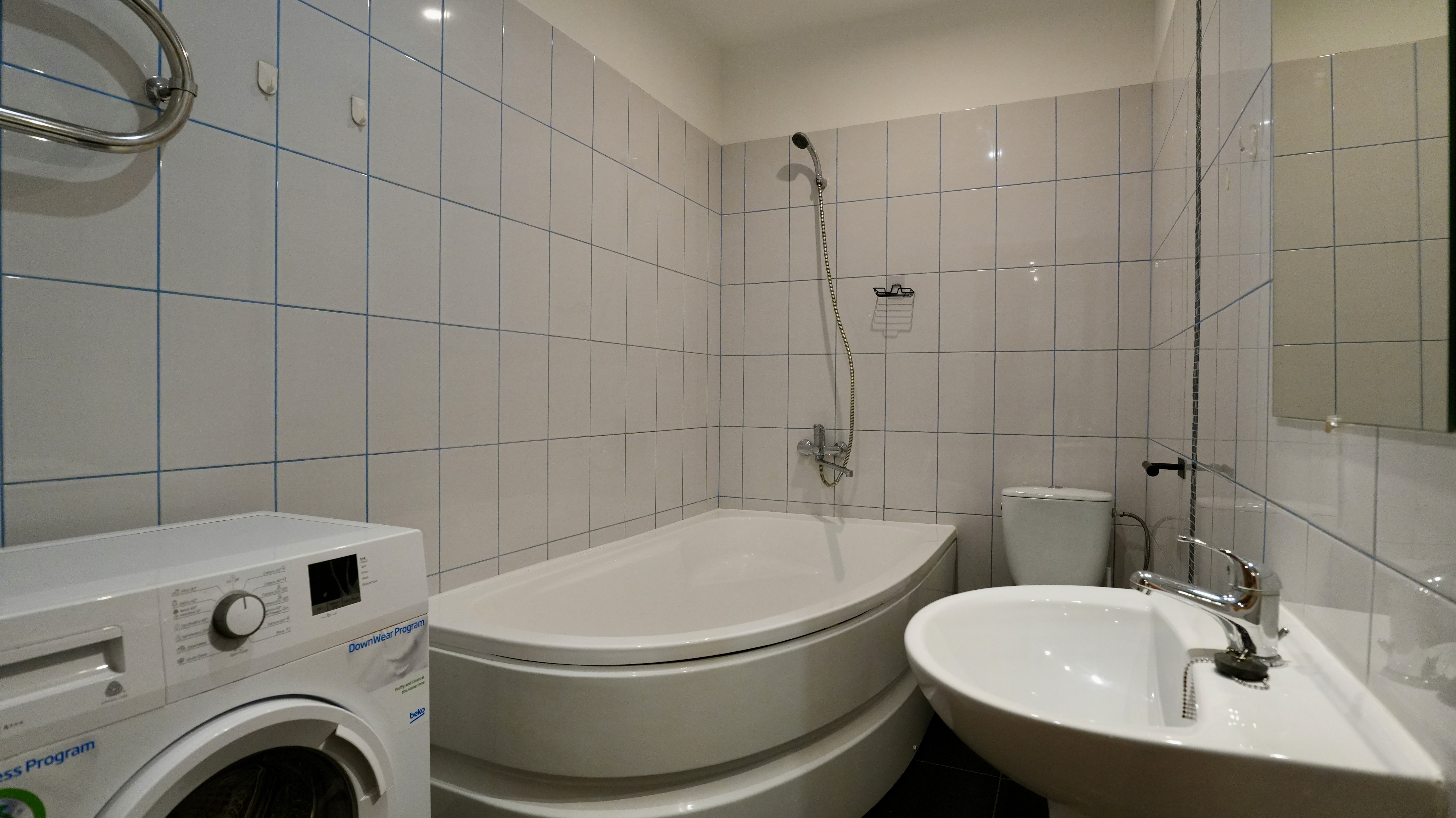 Dzīvoklis aprīkots ar nepieciešamajām mēbelēm un sadzīves tehniku. Tajā ir ērta divguļamā gulta, kas nodrošina komfortablu atpūtu un kvalitatīvu miegu. Izvelkams divguļamais dīvāns.