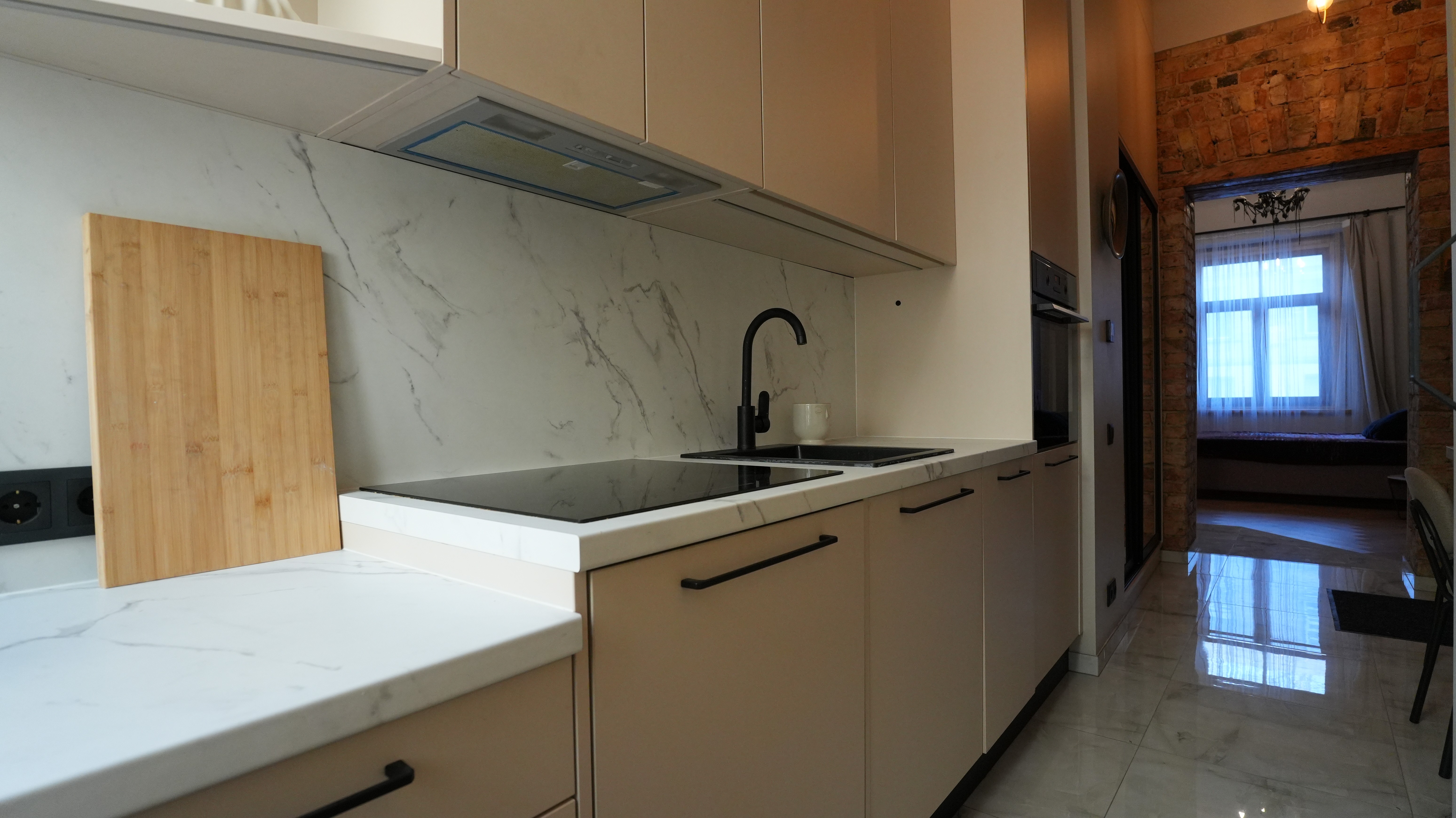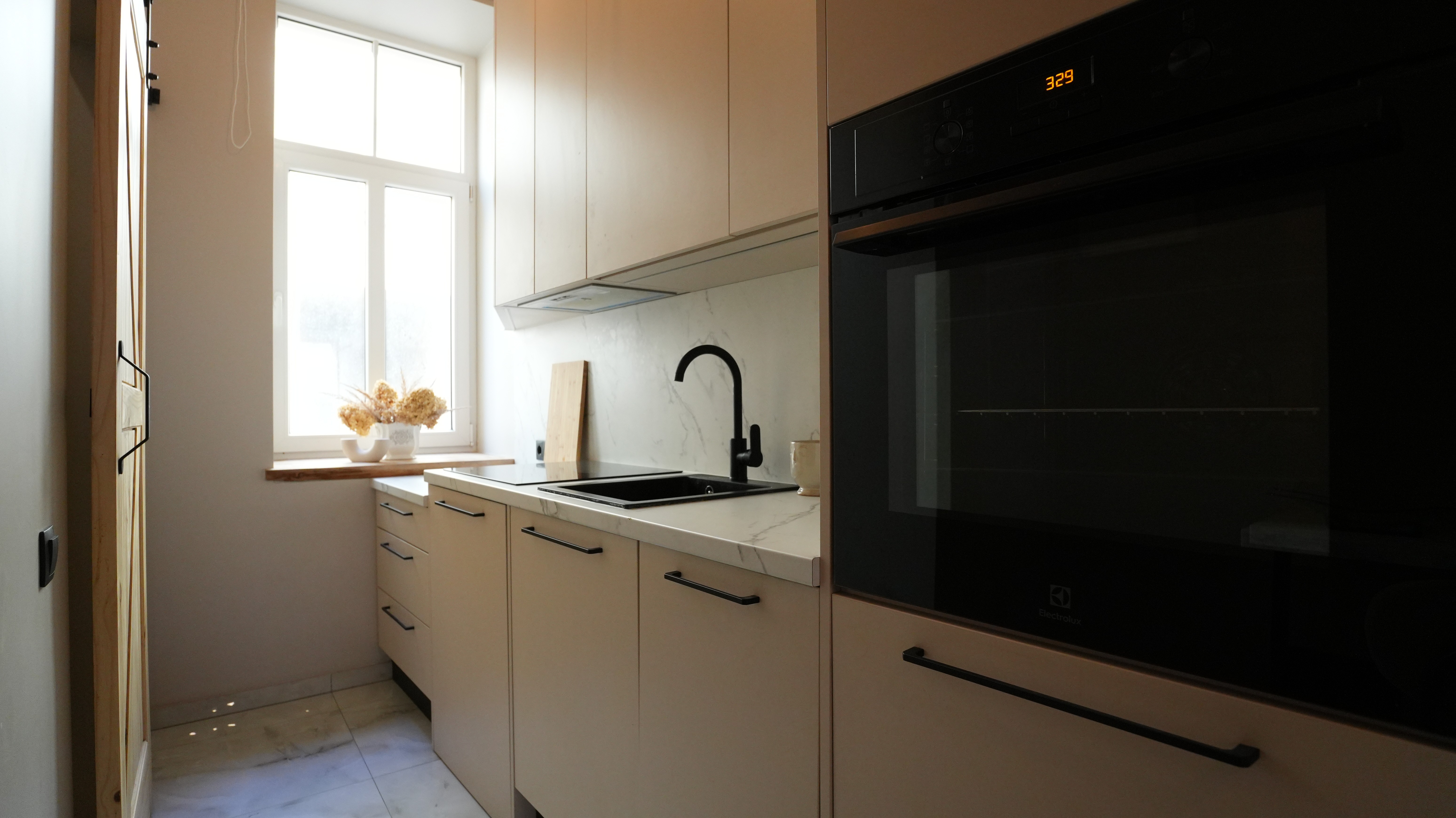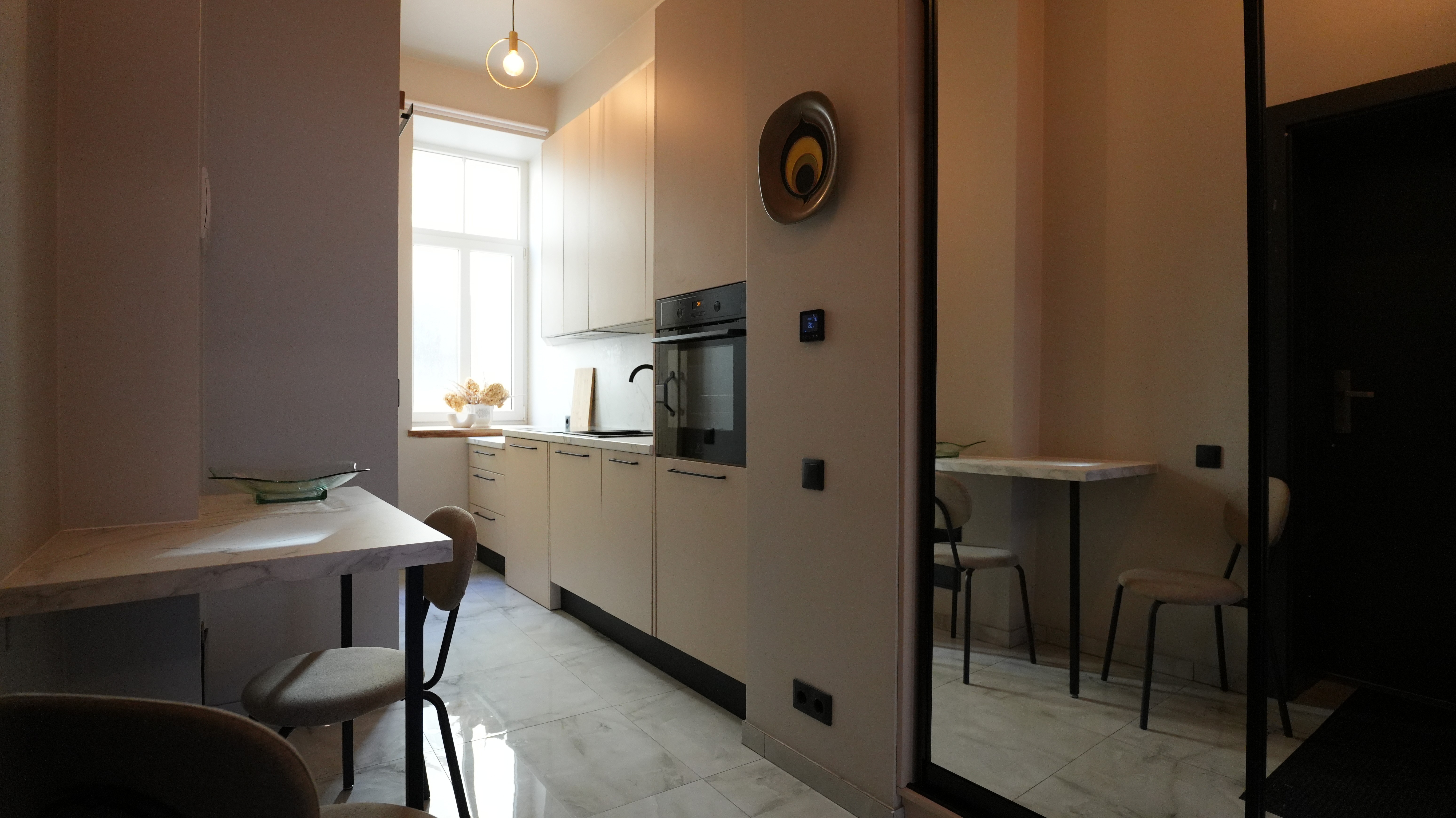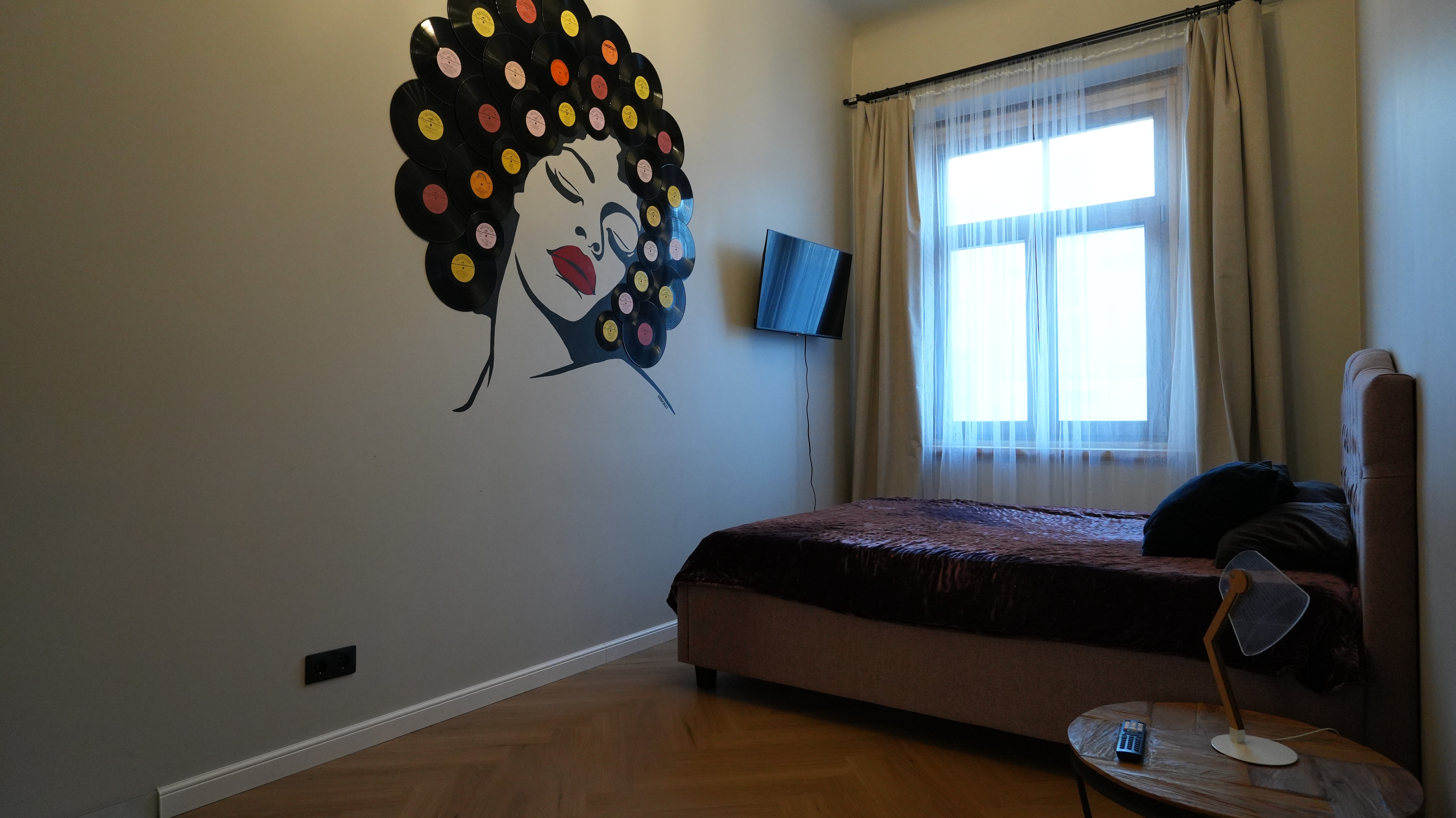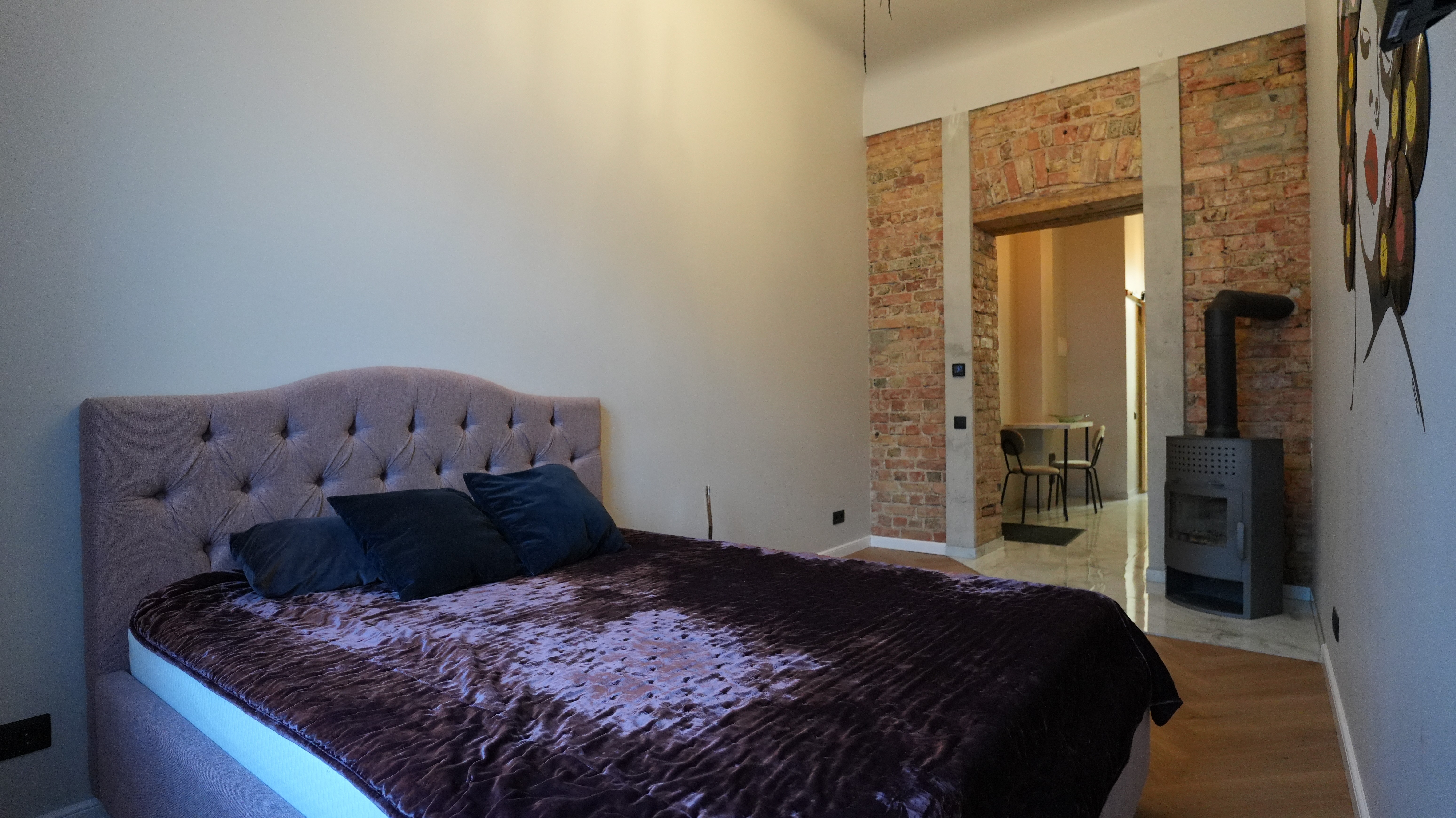The flat is equipped with the necessary furniture and household appliances. It has a comfortable double bed that ensures comfortable rest and quality sleep.