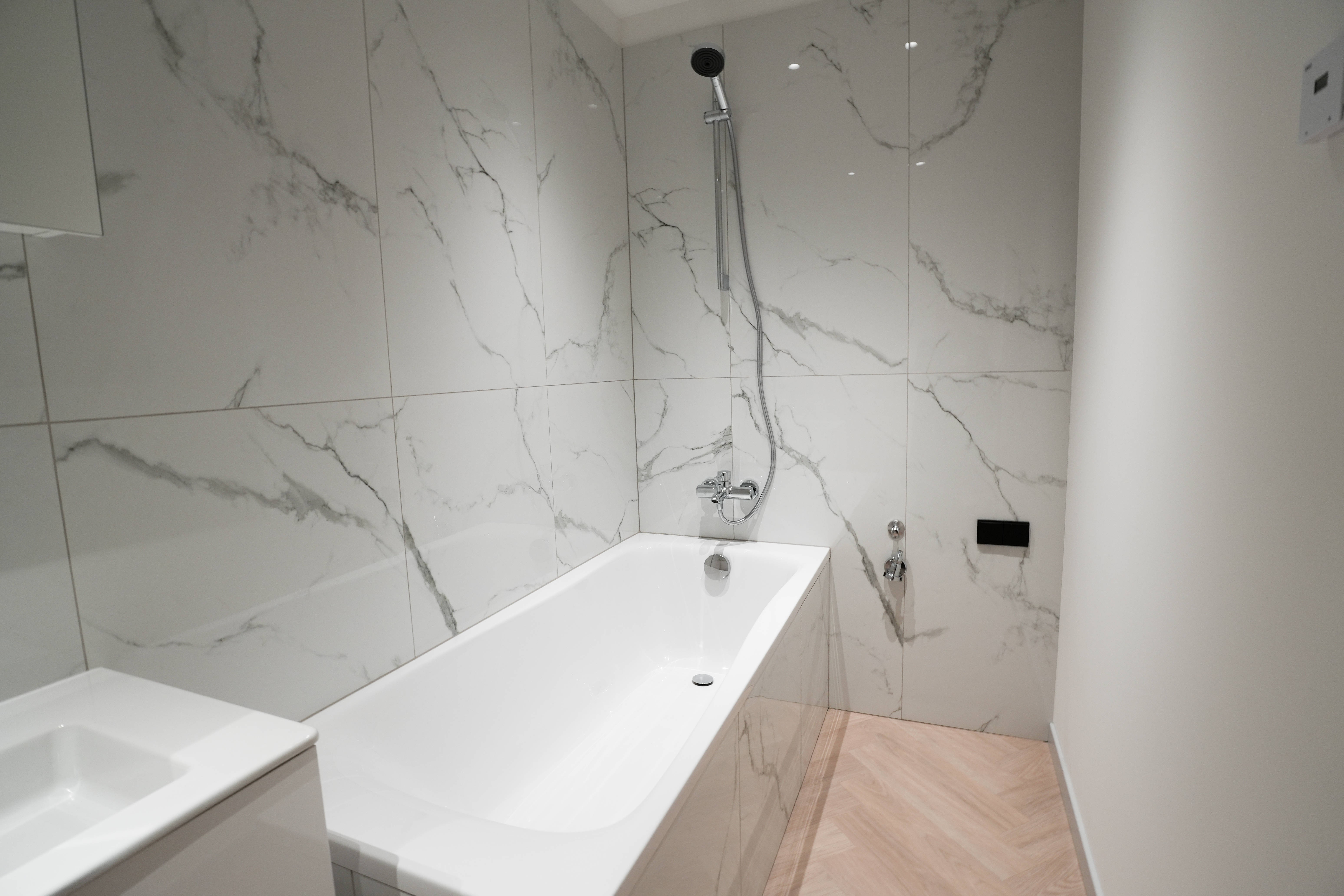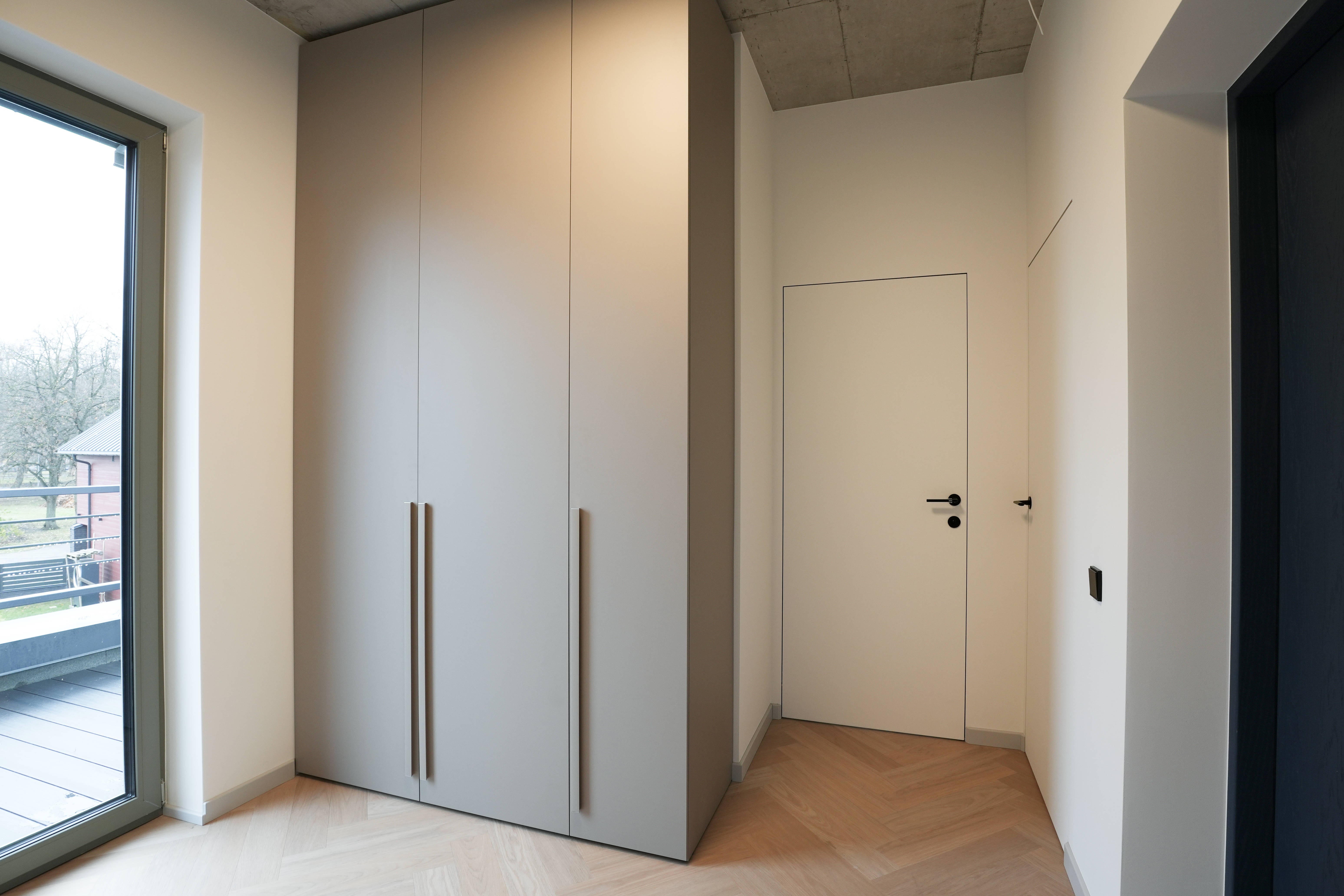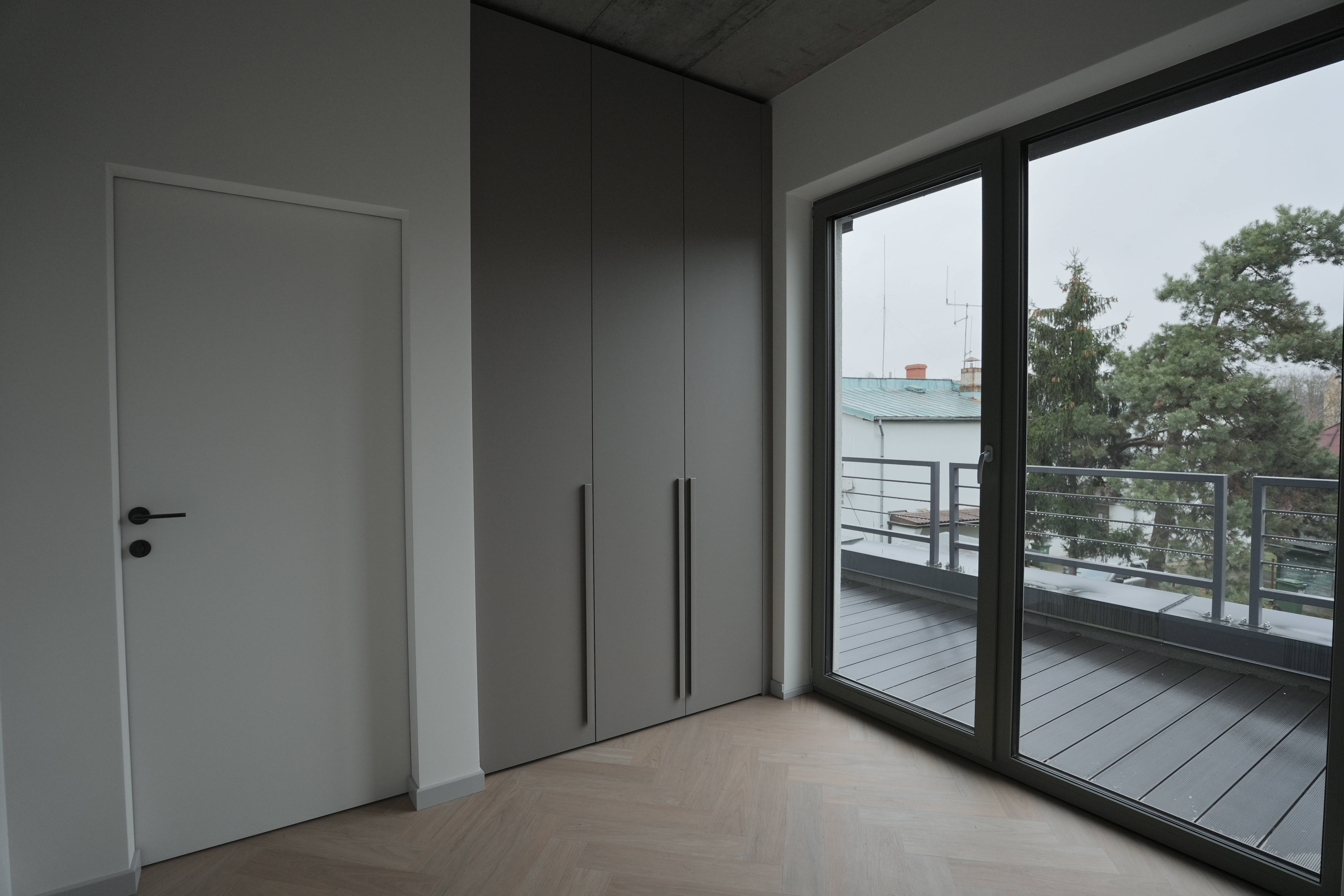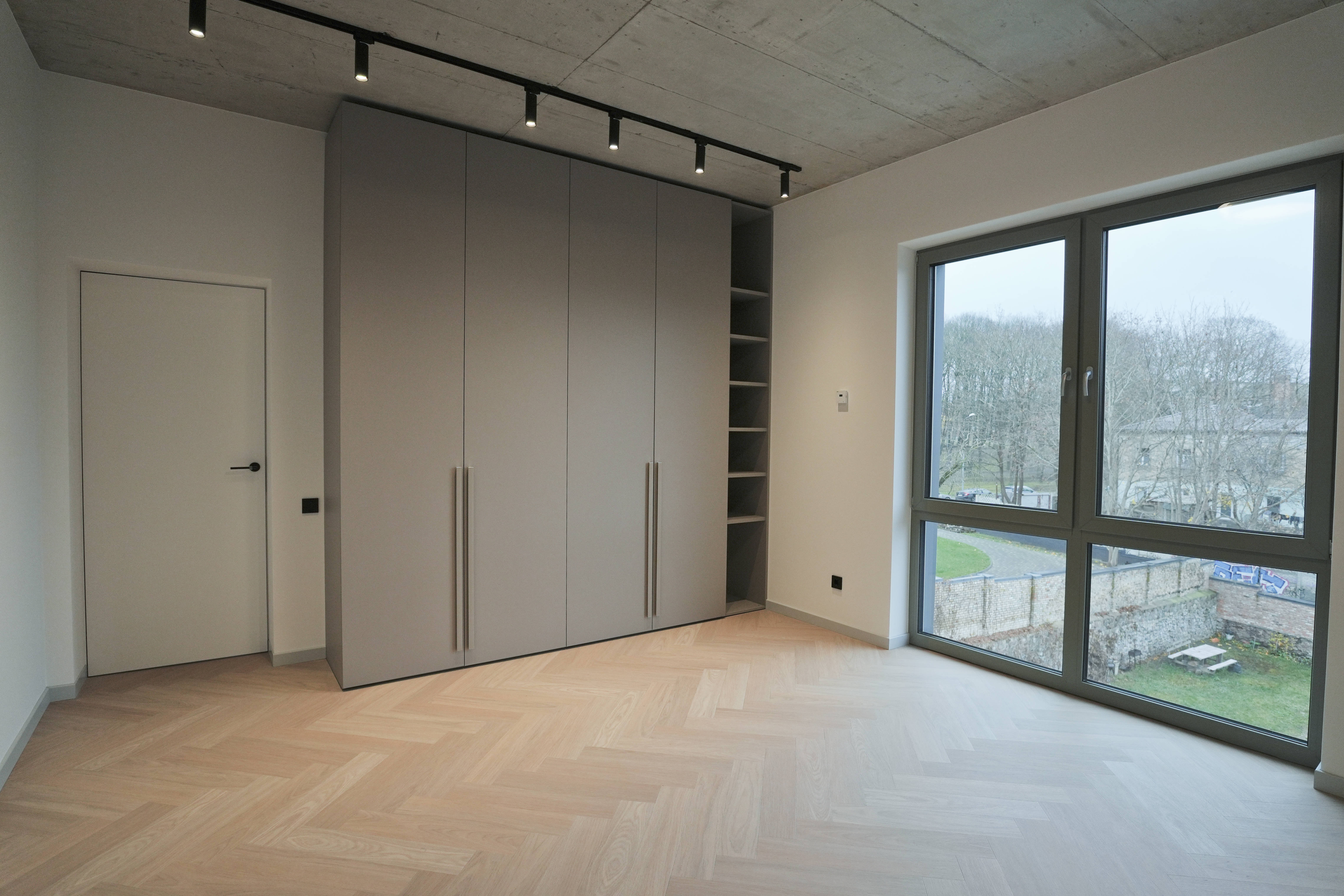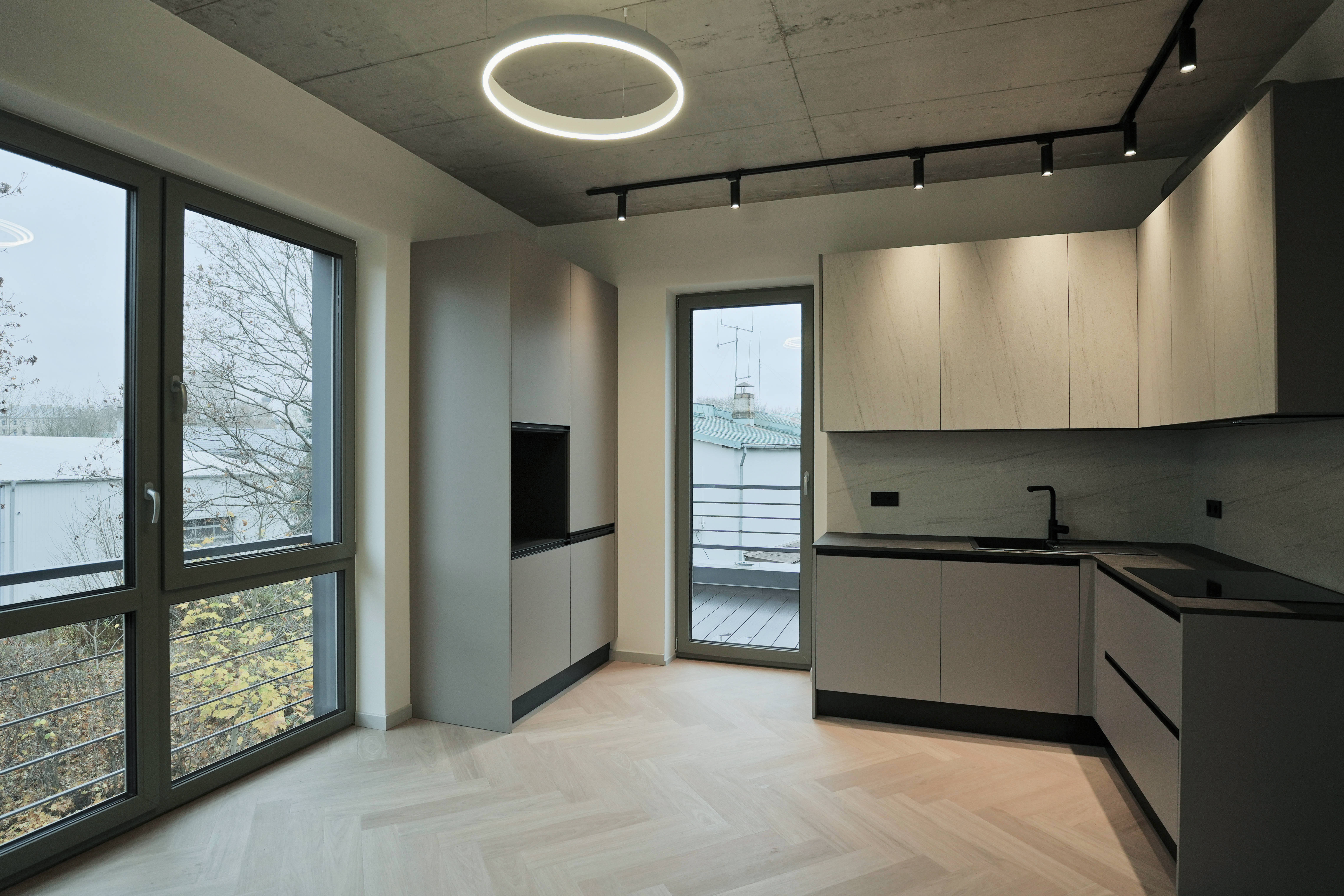 The apartment has a durable vinyl floor covering, "Reaton" doors with magnetic locks, excellent sound insulation, and concrete ceilings that promote coziness and quiet.