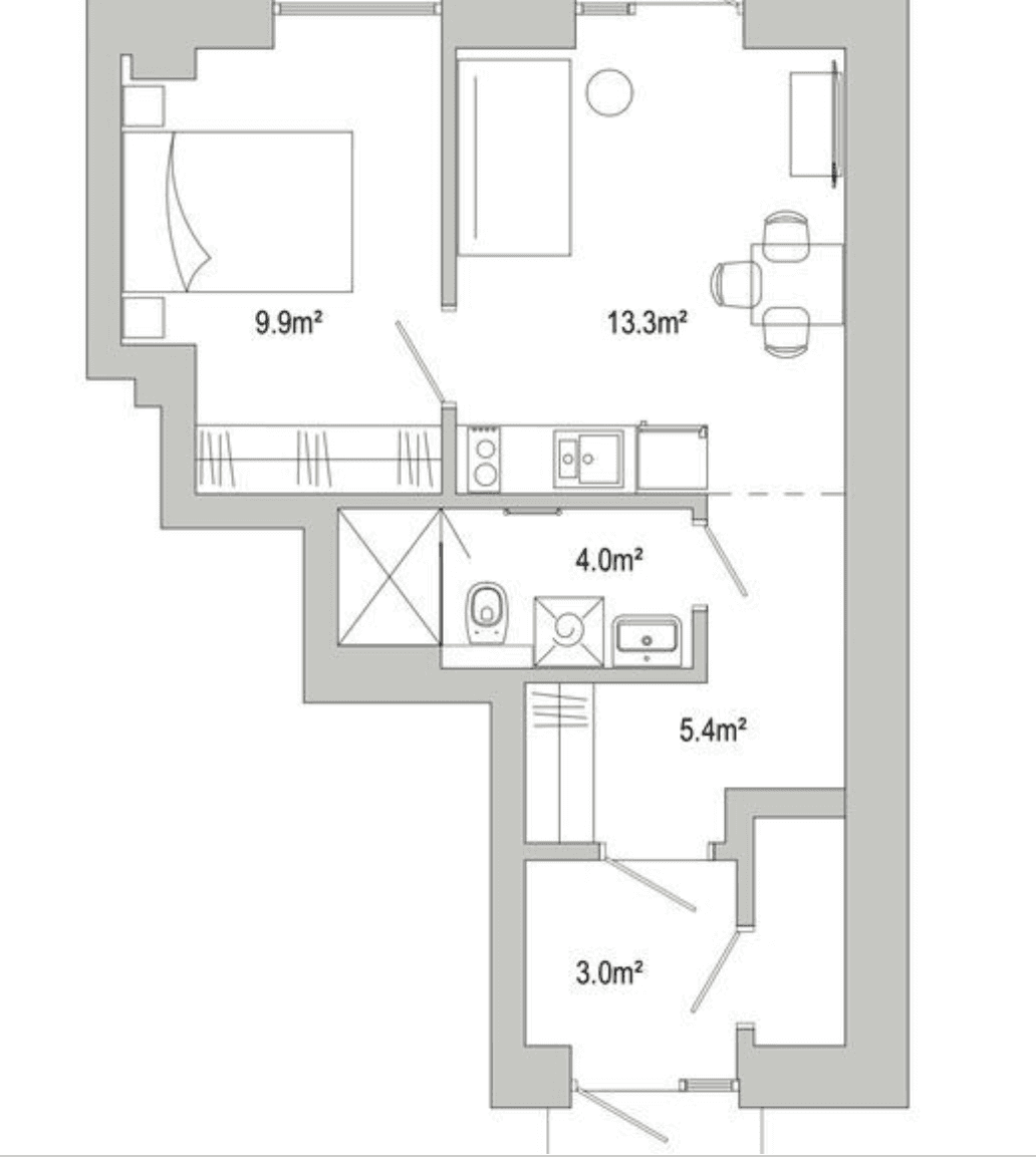 - Papildu priekštelpa pie ieejas, piemērota iebūvēta skapja ierīkošanai.