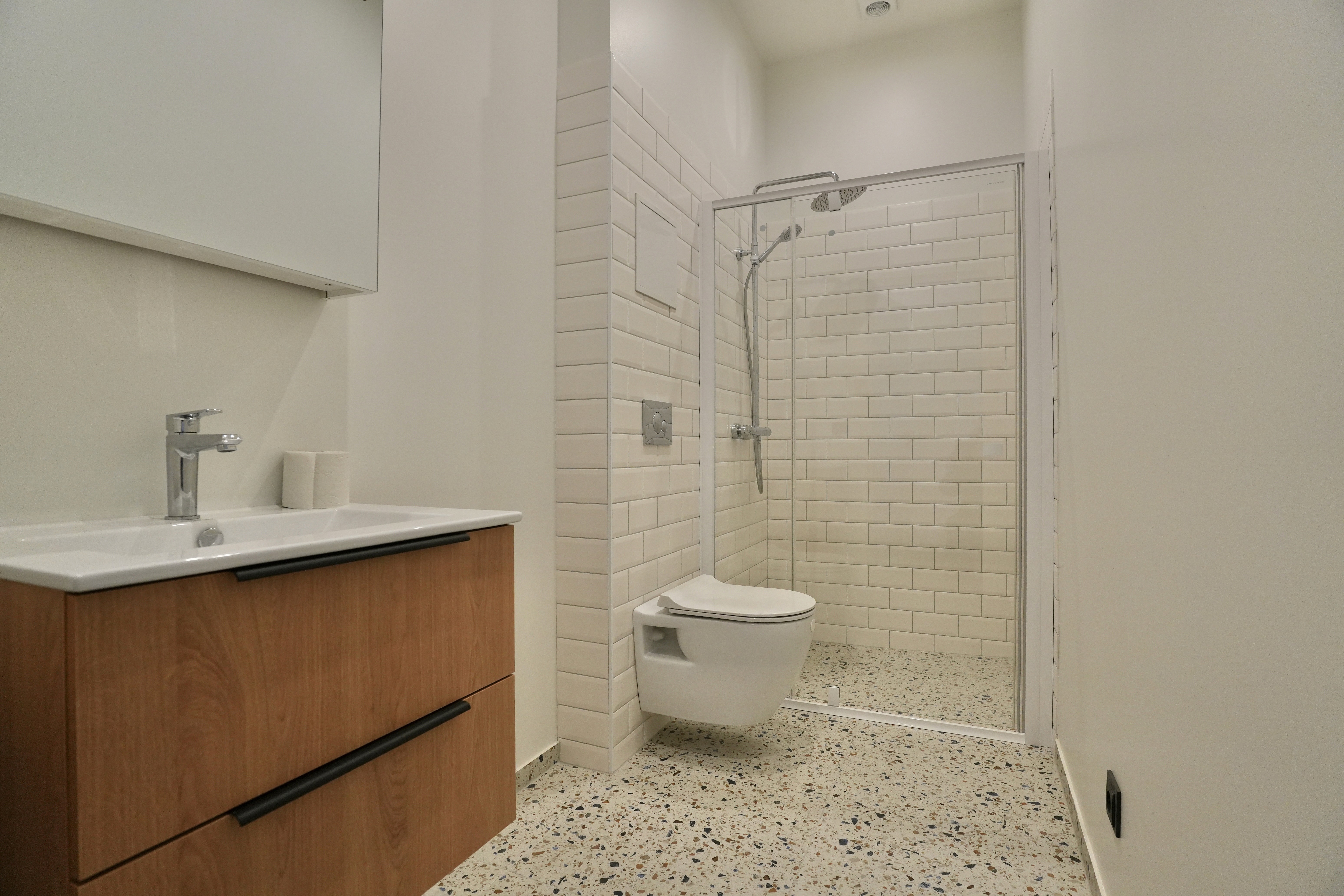Ozolkoka parketa grīdas, krāsotas reģipša sienas, masīvkoka iekšdurvis. Vannas istabā – flīzēta grīda un dvieļu žāvētājs. Dzīvokļa cenā iekļauta pilnībā aprīkota virtuves iekārta.