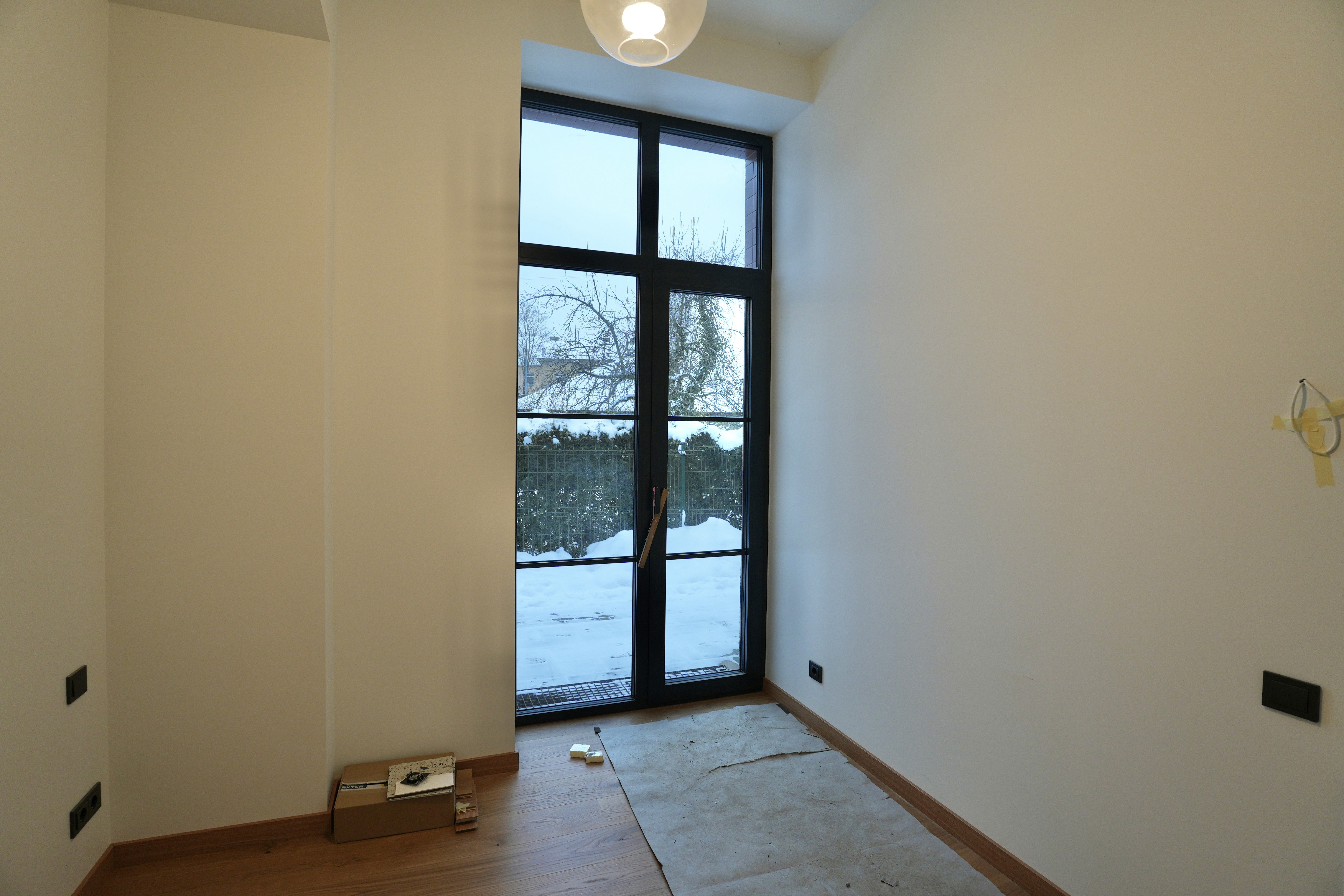 Dzīvoklim ir lieli panorāmas logi un augsti griesti (3,3 m), kas telpām piešķir īpašu gaišumu un plašuma sajūtu.