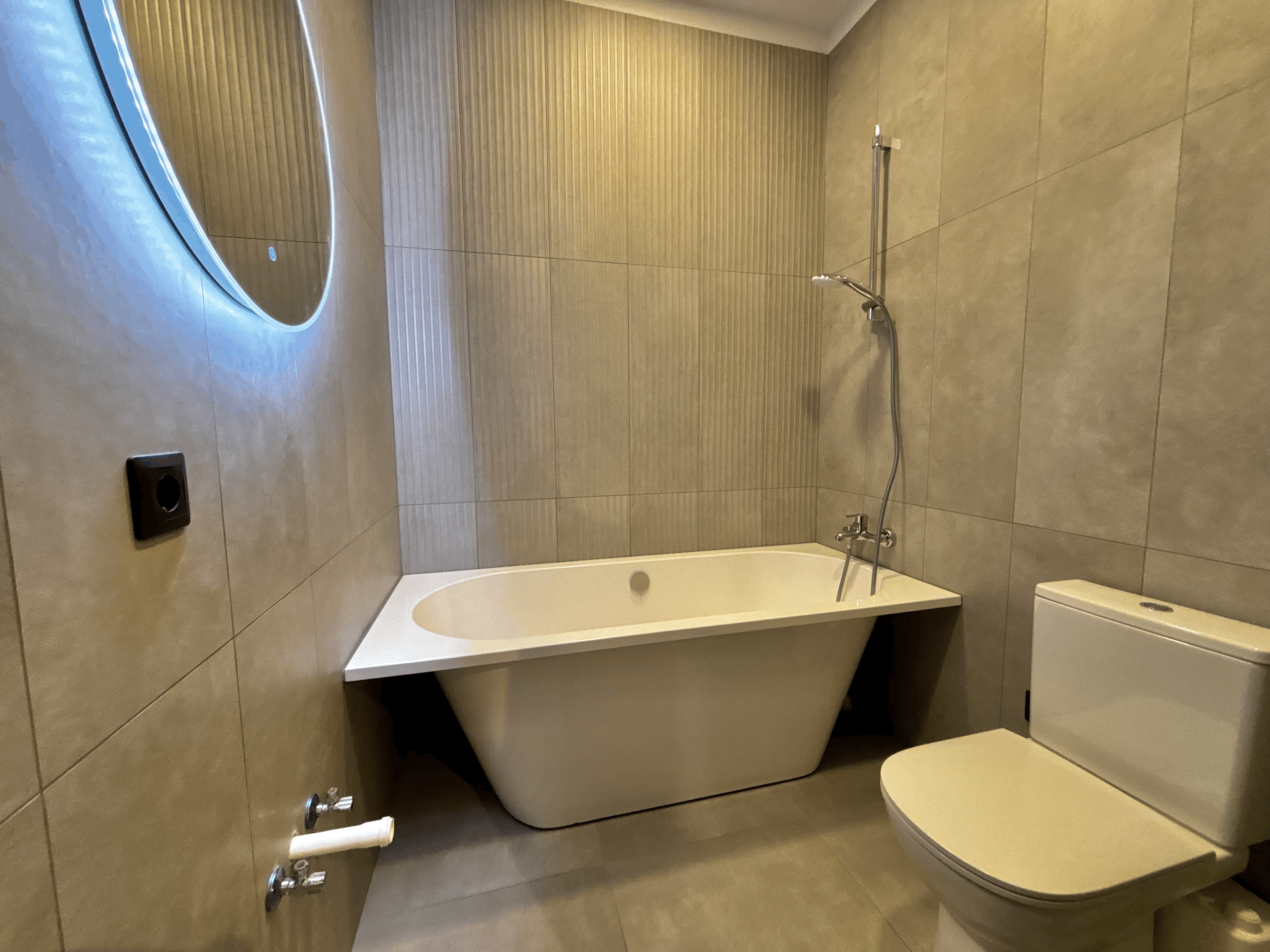 2 sanitārie mezgli – viens ar vannu, otrs ar dušu;