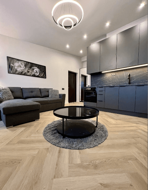 Pilnībā mēbelēti un aprīkoti ar sadzīves tehniku – ledusskapi, cepeškrāsni, indukcijas plīti